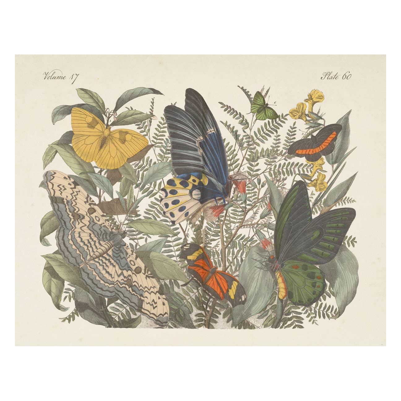 Impression vintage de cigales et de fleur de la passion avec cadre en option en vente B2B