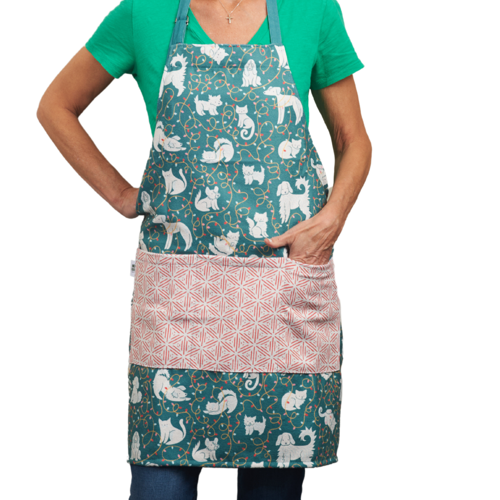 Ce tablier Woof apporte une touche amusante et fonctionnelle à n'importe quelle cuisine. Le meilleur ami de l'homme aide à la cuisine ! Le style de cravate standard convient à la plupart des tailles. Les cravates sont fabriquées à partir de fines rayures anthracites coordonnées. Deux poches Coton recyclé Emballé dans une boîte en carton recyclable pour faciliter l'affichage et l'offrir en cadeau.
