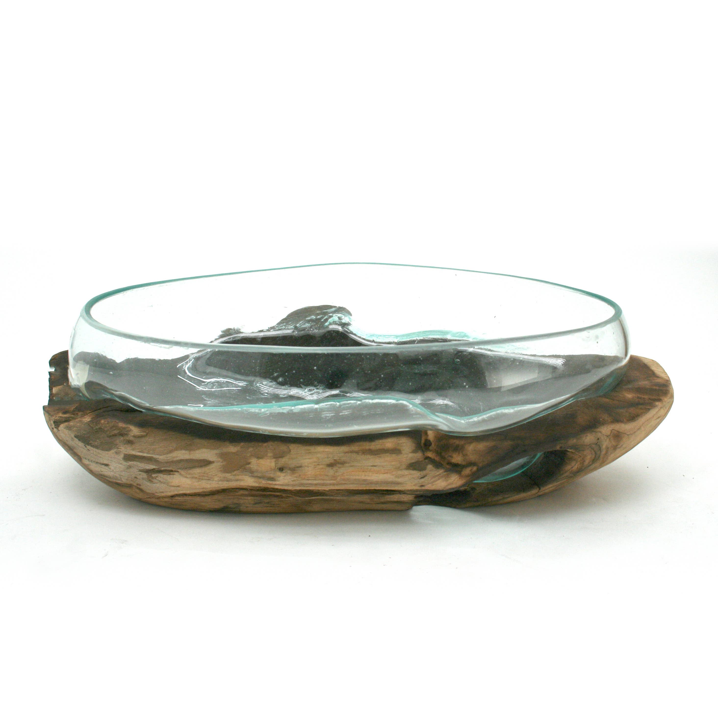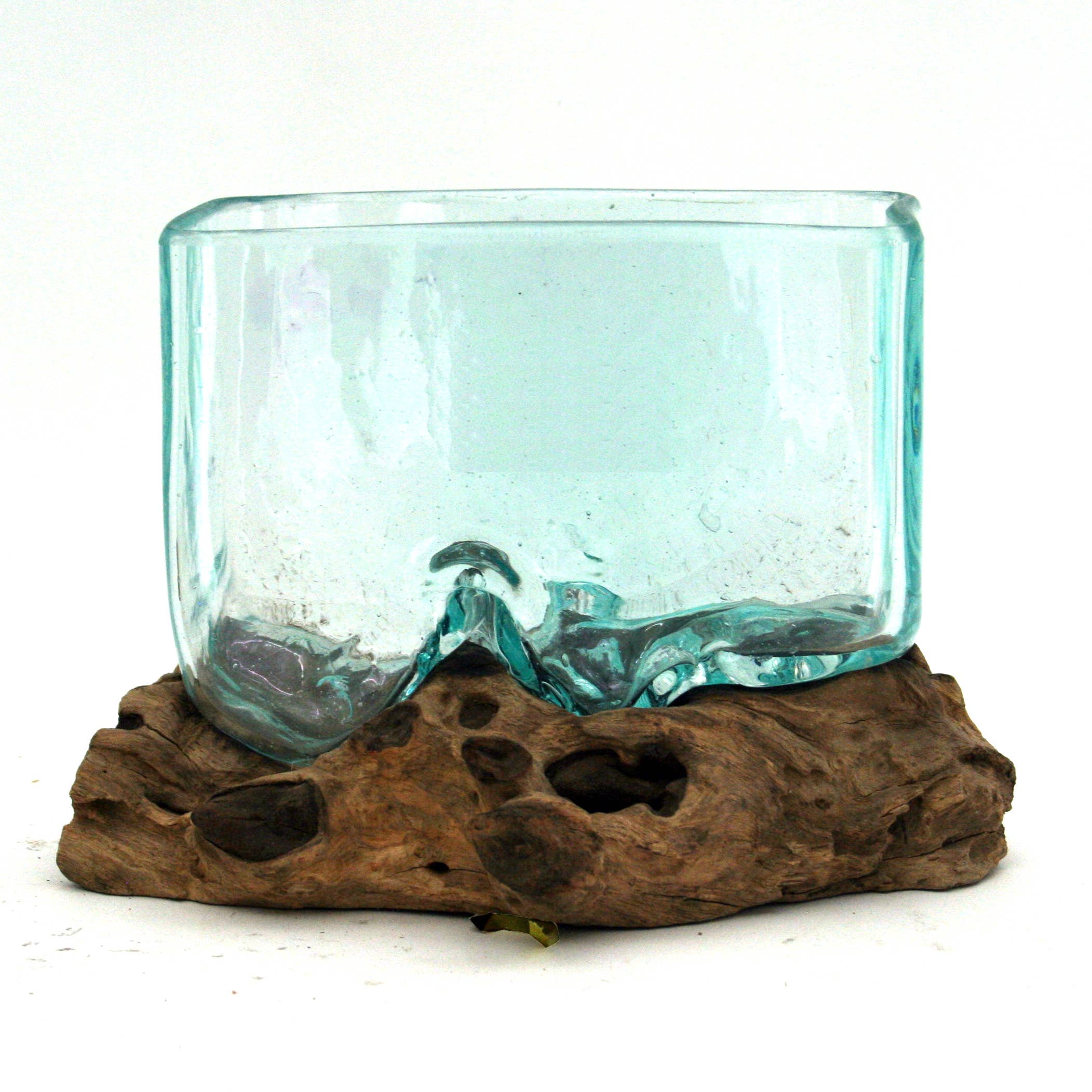 Des artisans qualifiés de Bali, en Indonésie, utilisent du verre recyclé pour souffler à la main ce magnifique récipient en verre unique en son genre directement sur les bases de racines de Gamal. Ce bois s'épuise par ailleurs dans l'industrie du meuble en bois franc. En raison de la nature organique du produit, il n'y en a pas deux exactement identiques. Certains ont du bois plus grand, d'autres ont un verre plus grand. Les légères imperfections du verre résultent de la nature primitive du produit soufflé à la main. Parce que Cohasset travaille directement avec les artisans balinais qui fabriquent ce produit, notre qualité est de premier ordre. Tous les vendeurs de ces produits n'ont pas les mêmes normes de qualité.