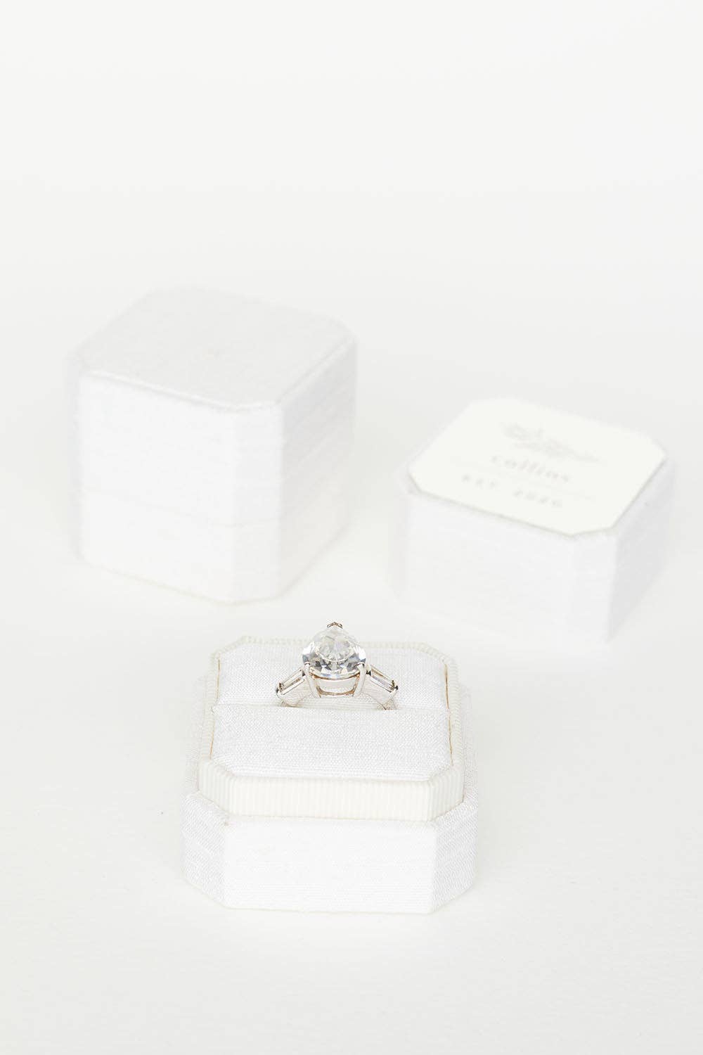 Le Brightstone ressemble à un capitaine de navire fatigué qui vient de voir le faisceau du phare où la nuit étoilée rencontre le bord de la mer bleu encre. Le voyageur va rentrer chez lui. * À propos * Ajustement * Monogrammes Nos boîtes sont volontairement petites et mesurent 3,5 cm de tous les côtés. Ils sont fabriqués individuellement à la main avec ce que nous considérons comme le velours le plus extraordinaire au monde. Dotées de couleurs personnalisées fabriquées exclusivement pour nous, nos nouvelles boîtes sont si exquises qu'elles scintillent littéralement en personne, reflétant la lumière de la manière la plus glorieuse possible. Est-ce que ma bague va bien ? Nos boîtes sont conçues pour être petites afin que votre bague soit au centre de l'attention. Ils mesurent environ 3.