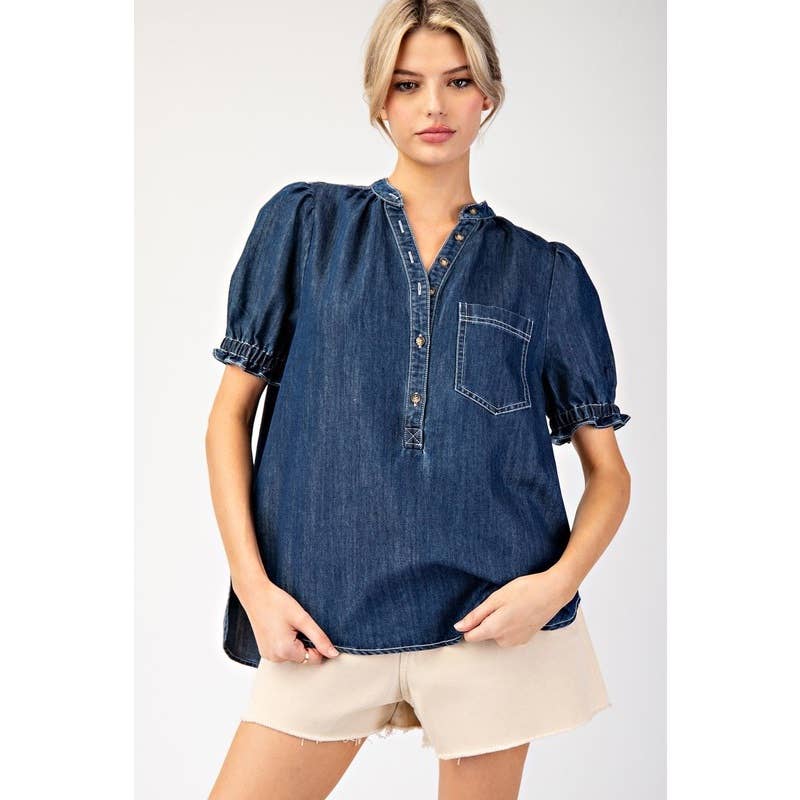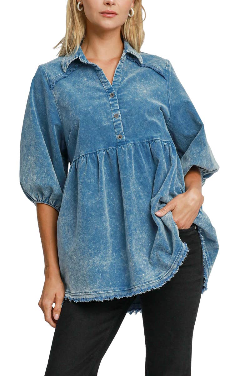 Haut Baydoll en jean plissé surdimensionné