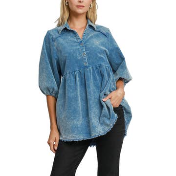 Haut Baydoll en jean plissé surdimensionné en vente B2B