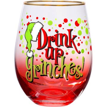 Verre à vin sans pied 12 oz avec couvercles et pailles, design Grinch en vente B2B