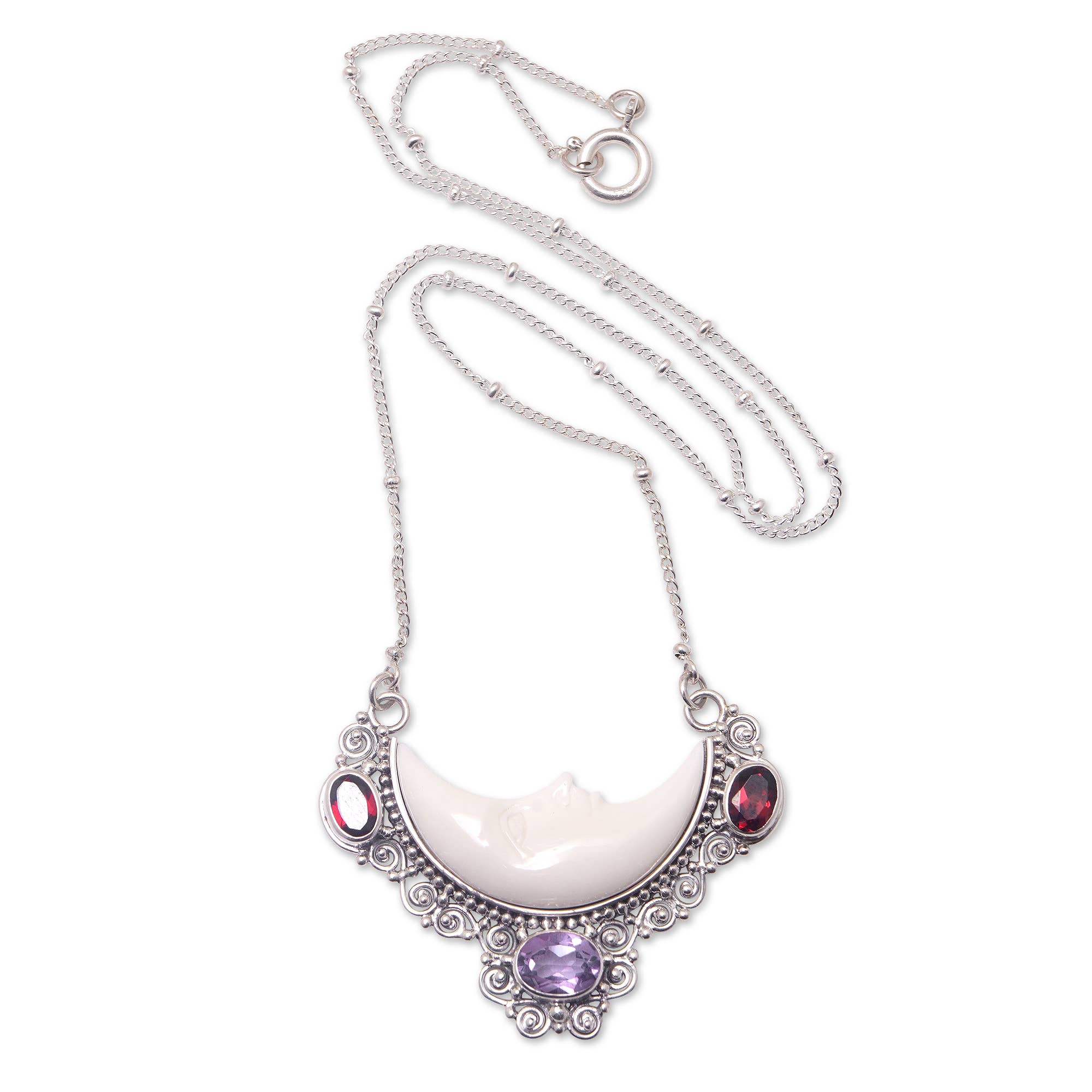 Collier chat et lune améthyste quartz rose onyx guérison Reiki en vente B2B
