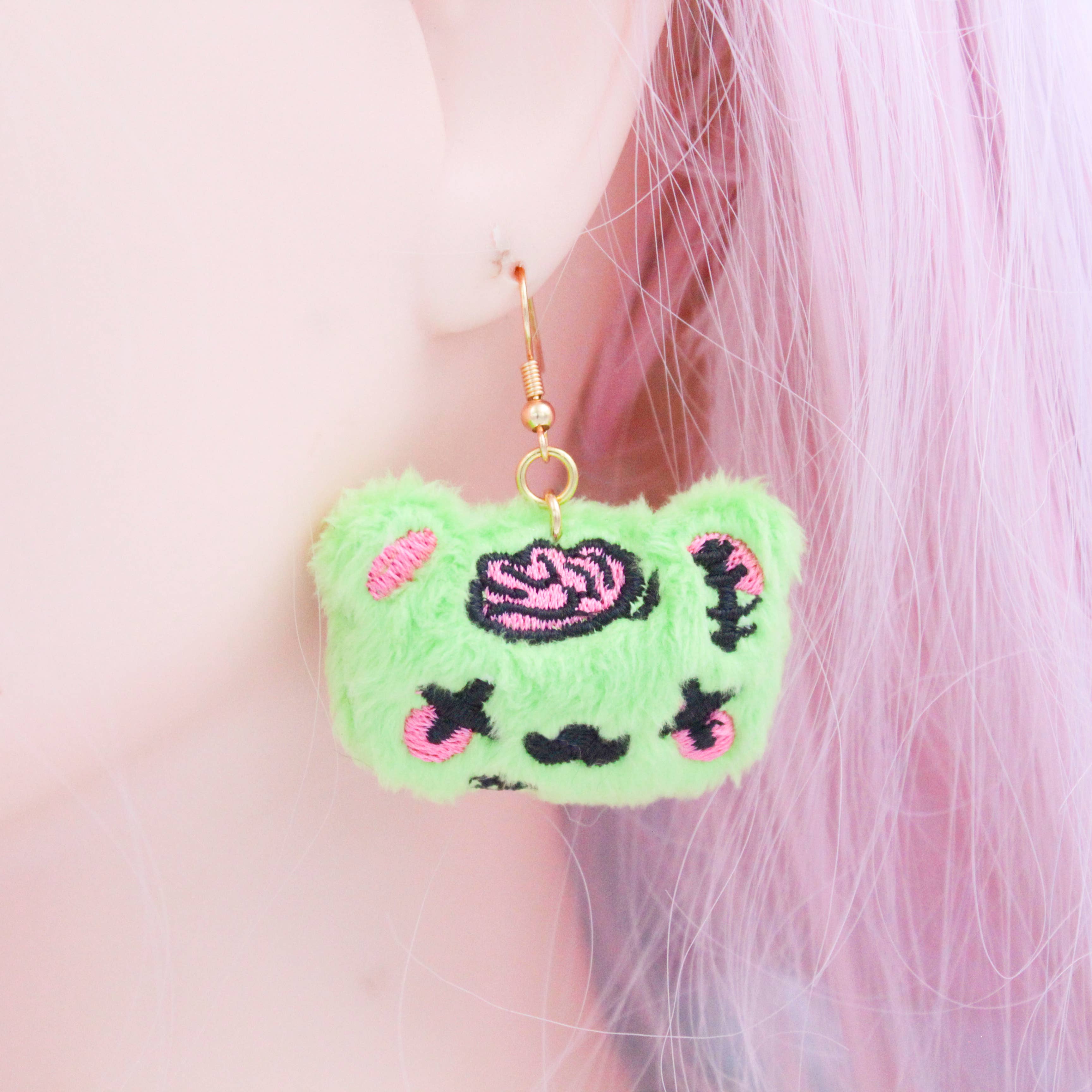 Vous pouvez désormais porter mes adorables peluches kawaii et les emmener partout lors de vos aventures ! Ces barrettes en peluche ours zombie kawaii sont brodées sur un tissu Minky ultra-doux et remplies de fibres polyester. Parfaites pour tous les styles ! Utilisez ces accessoires pour une mise à jour instantanée de presque toutes les coiffures ! Dimensions : environ 5 cm de large sur 3,8 cm de haut Conçu exclusivement pour Kawaii Hair Candy Fabriqué aux États-Unis Utilisation réservée aux adultes