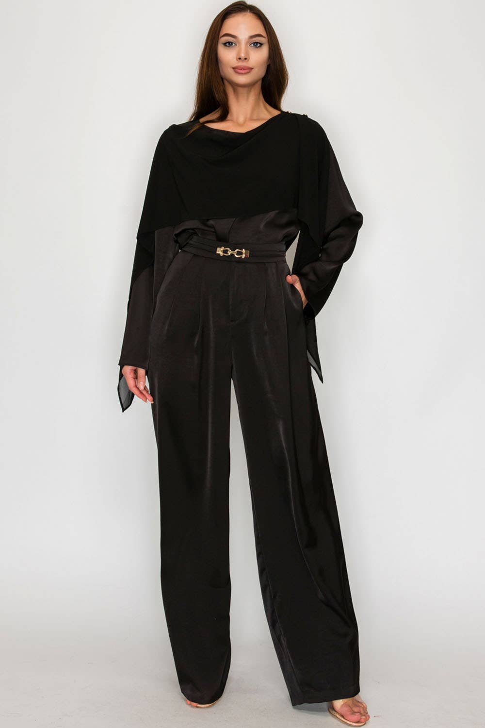 C'est un ensemble pantalon mignon et chic.