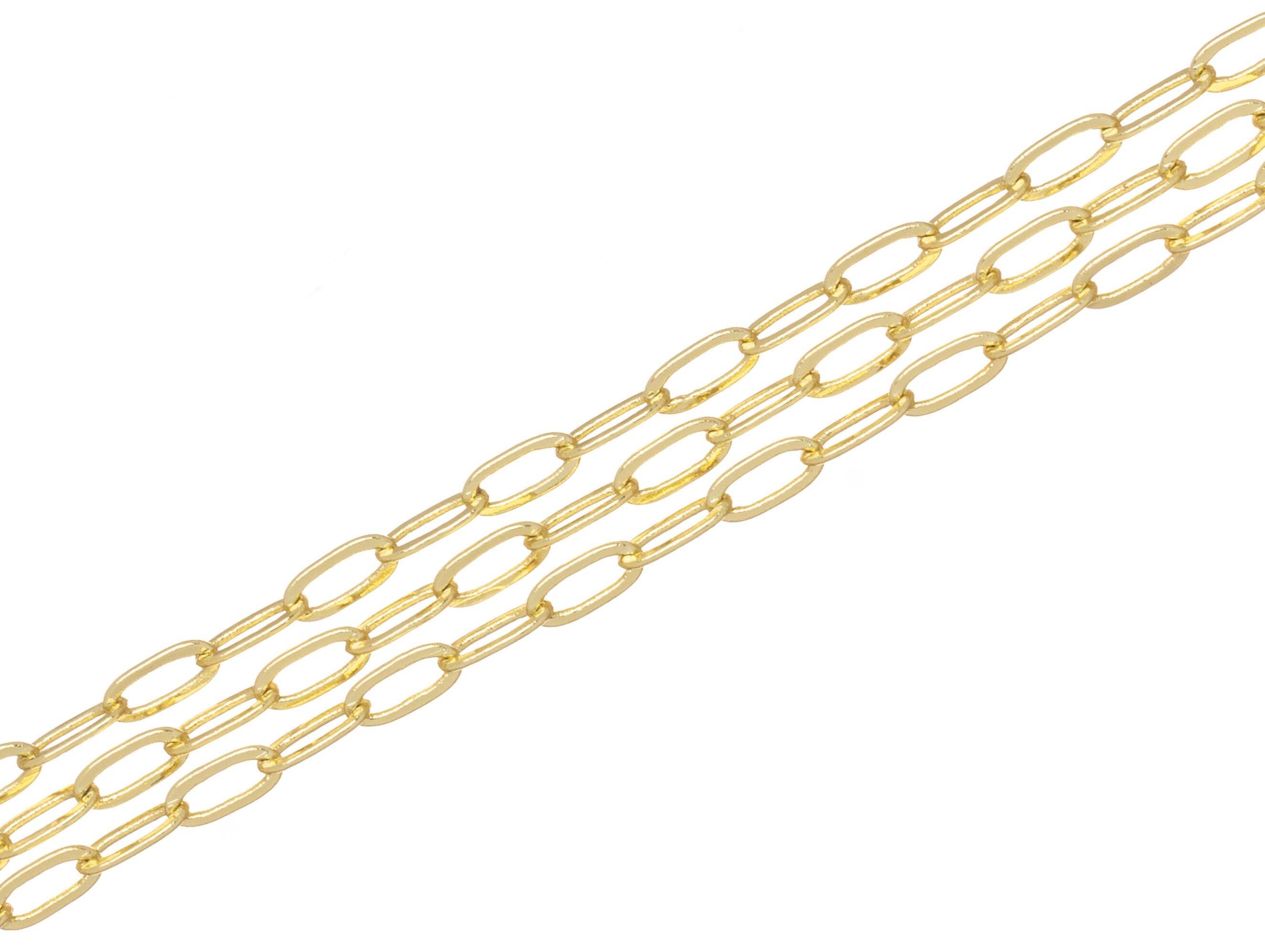 Chaîne Paperclip en plaqué or 24 carats, maillons ovales plats CH108, non finie
