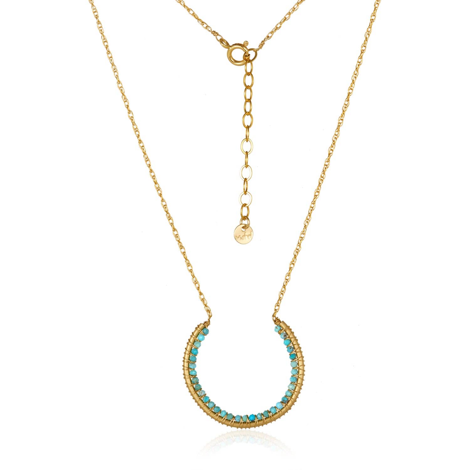 14/20 en or, 14 carats de sertissage. Turquoise mexicaine véritable de 3 mm. Longueur : 15,5 cm.