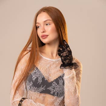 Top à manches longues en résille avec dentelle florale en vente B2B