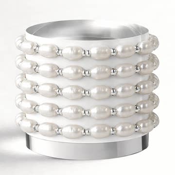 Description du produit : Une spirale interminable de perles, c'est tout ce dont une femme a besoin ! Ce bracelet en fausse perle de 12 millimètres à quatre rangées est l'accessoire idéal pour tous les jours ou les fêtes. Numéro du modèle : 4536B12LC