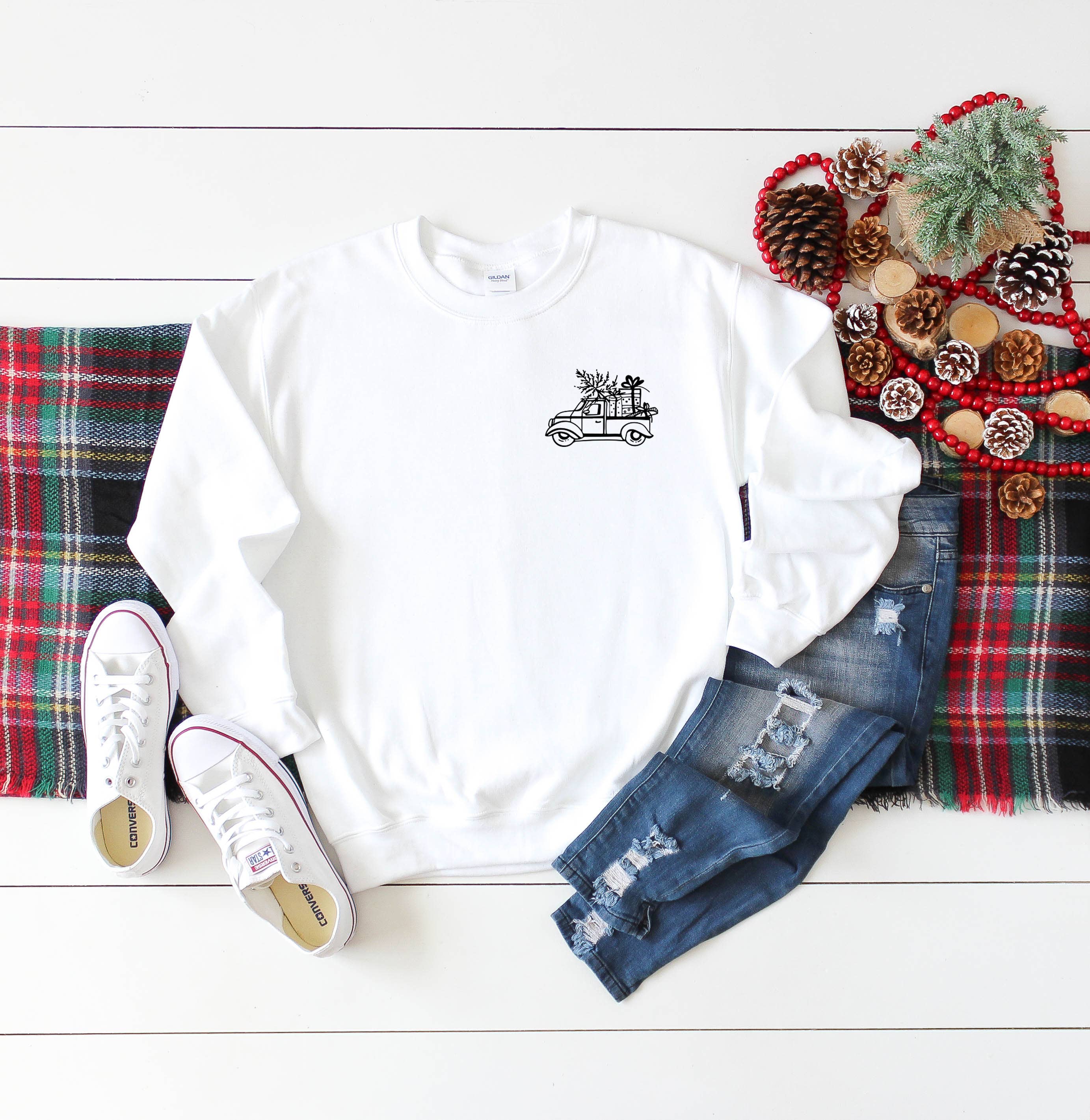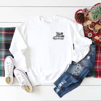 Southern Attitude Designs Inc - Vente Sweat-shirt à imprimés – femme - Camion de Noël rose (aspect scintillant)1