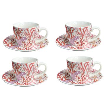 Tasses et sous-tasses corail - lot de 4