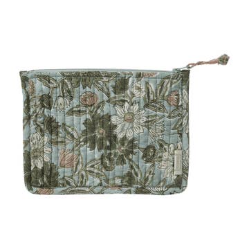 La petite pochette indispensable du quotidien. À glisser dans un sac à main, un tote bag, un sac week-end pour y ranger make-up, bijoux, papiers, ou petits trésors. Imprimée à la main en block print, elle allie douceur, fonctionnalité et touche artisanale. Matelassée, doublée en coton et ornée d’un pompon fait main, elle a tout pour plaire. On aime : son format parfait, sa légèreté et son imprimé unique, à offrir ou à s’offrir. Détails : Fermeture zippée invisible Matelassage moelleux à surpiqûres verticales Doublure coton Pompon fait main Popeline 100 % coton – ouatinage 100 % polyester Format : 20 × 15 cm