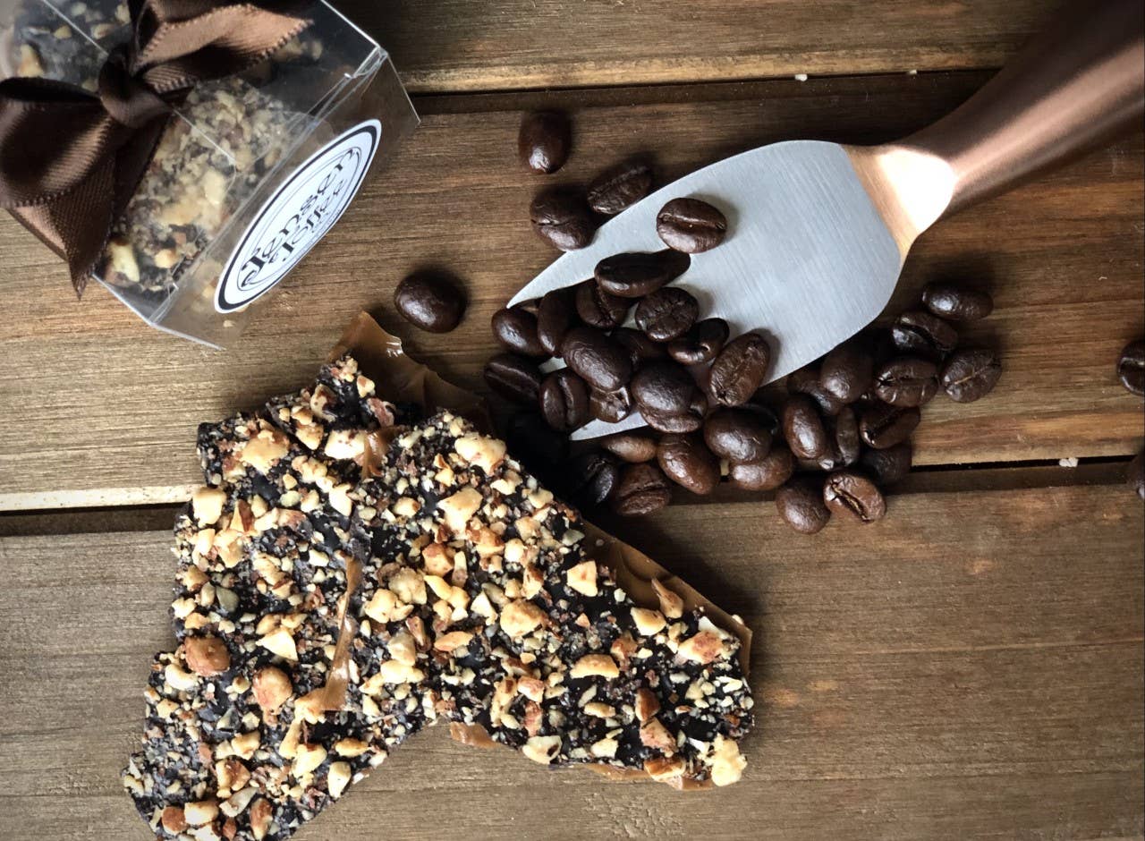 Notre caramel au chocolat noir et aux amandes était un ajout naturel à notre recette familiale d'options de caramel au beurre. La même saveur beurrée classique et la même texture croquante, mais avec une touche subtile de cacao noir. Cette saveur a été un succès dans nos magasins de détail ! Des ingrédients simples combinés à notre technique spéciale offrent une saveur inégalée.
