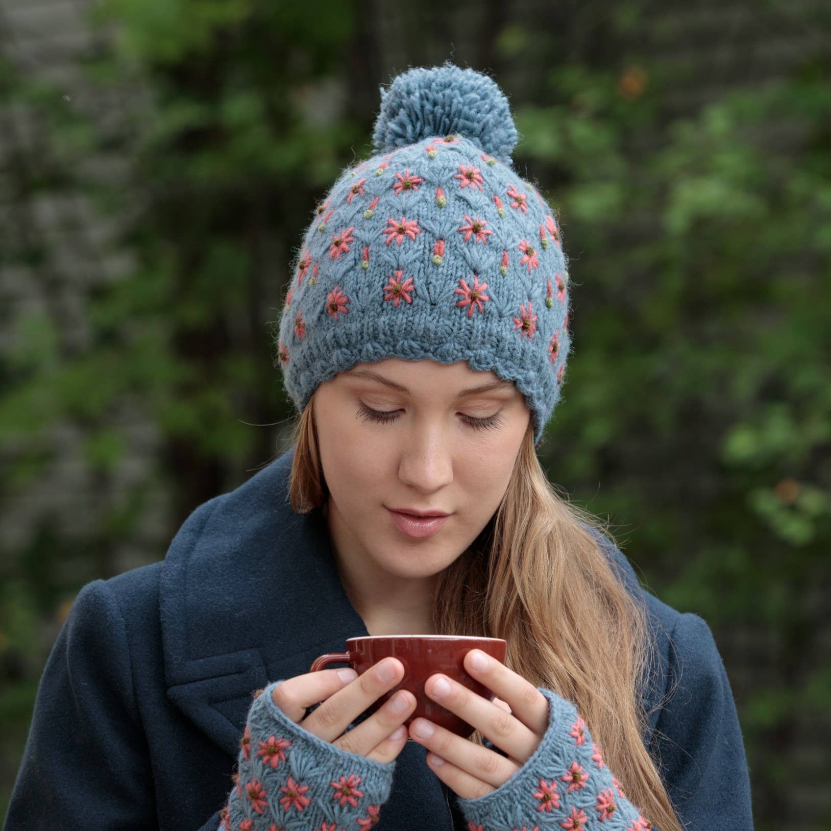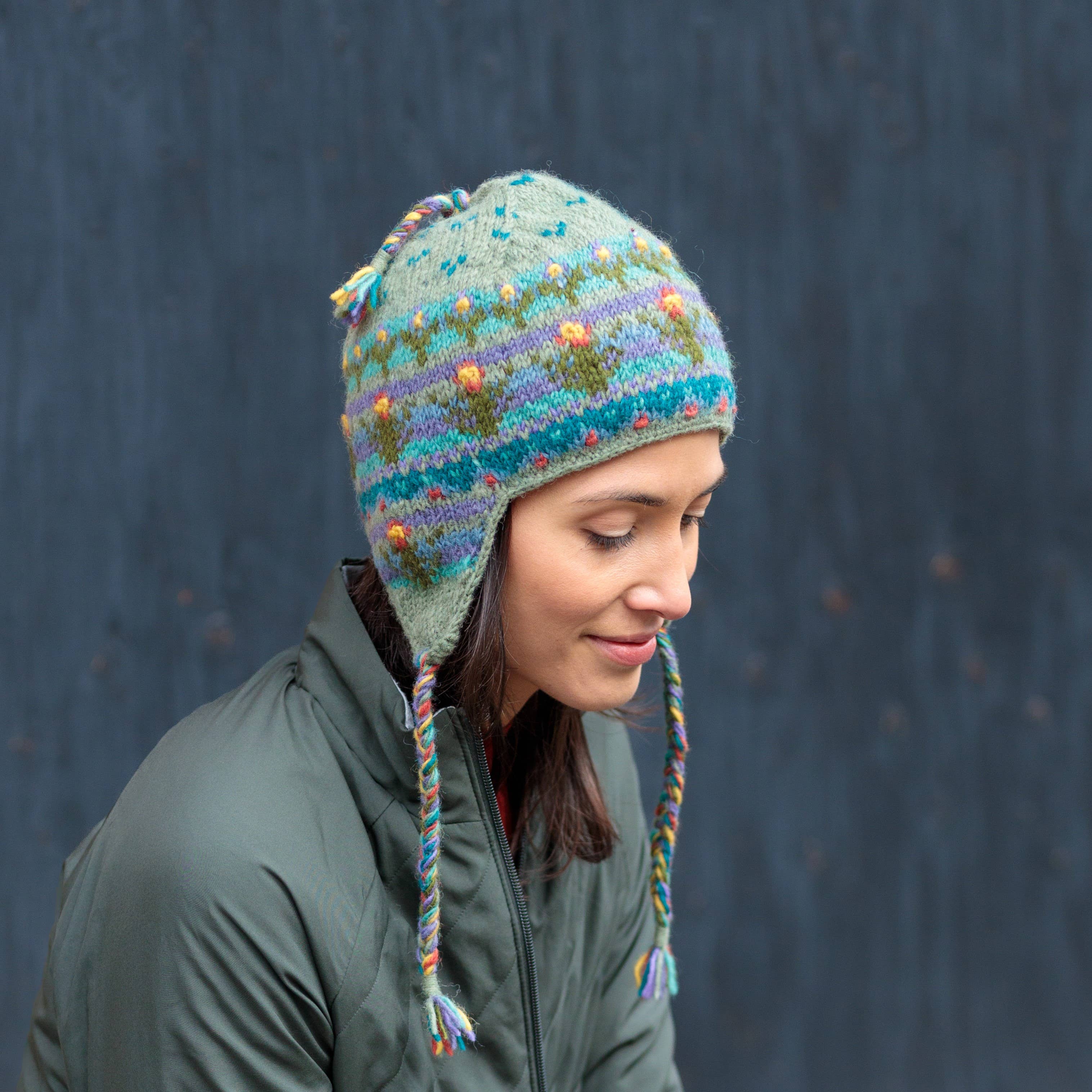 Le bonnet Sadie allie un savoir-faire intemporel et un charme douillet dans un accessoire d'hiver ravissant. Un tricot jacquard doux sert de toile de fond à des fleurs joyeuses brodées à la main, chacune étant cousue par des artisans qualifiés au Népal. Une bordure en crochet festonnée ajoute une touche vintage, tandis que l'intérieur est doté d'une bande doublée de polaire pour garder vos oreilles au chaud lors des journées glaciales. Associez-le aux mitaines sans doigts assorties pour un look coordonné et charmant par temps froid. 100 % laine Bande doublée de polaire en polyester pour plus de chaleur Commerce équitable. Fabriqué à la main au Népal. Nettoyage à sec/lavage à la main uniquement.