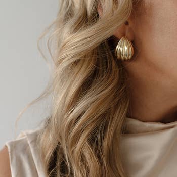 Ces boucles d'oreilles texturées à motif floral apportent un éclat audacieux avec des courbes douces. Leur design sculptural doré fait une déclaration tout en restant léger et facile à porter. * 3,18 cm de hauteur x 2,54 cm de largeur * Matériau : laiton plaqué or