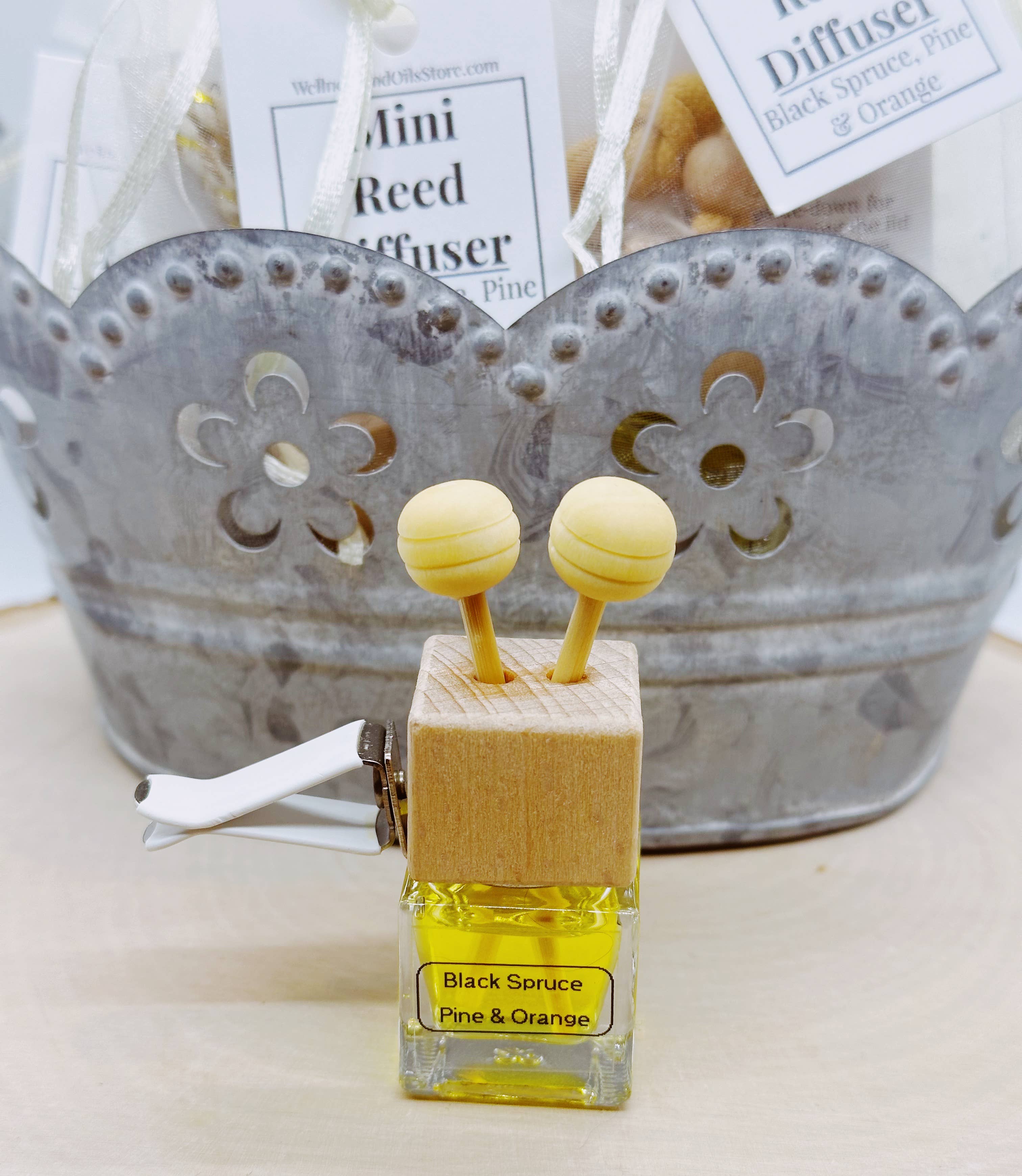 Apportez l'essence de la nature dans votre gamme de produits avec notre diffuseur de voiture Mini, notre best-seller. Infusé avec le mélange rafraîchissant d'huiles essentielles d'épinette noire, de pin et d'orange, ce diffuseur élégant et compact est un ajout parfait à la collection bien-être ou aromathérapie de votre magasin. Pourquoi les détaillants l'adorent : * Forte demande : Les produits d'aromathérapie pour voiture sont une tendance croissante pour les acheteurs soucieux de leur bien-être. * Polyvalent et élégant : Design compact et chic qui séduit un large éventail de clients. * Parfum naturel : Mélange boisé et d'agrumes tendance pour un attrait large. * Facile à utiliser : À suspendre dans la voiture pour une aromathérapie sans tracas. * Attrait pour les cadeaux : Une option réfléchie et pratique pour offrir ou pour un usage personnel. Détails du produit : 8 ml dans une bouteille en verre emballée dans un sac en organza. Ingrédients : Solution de diffuseur écologique, huiles essentielles d'épinette noire, de pin, d'orange et huile parfumée.