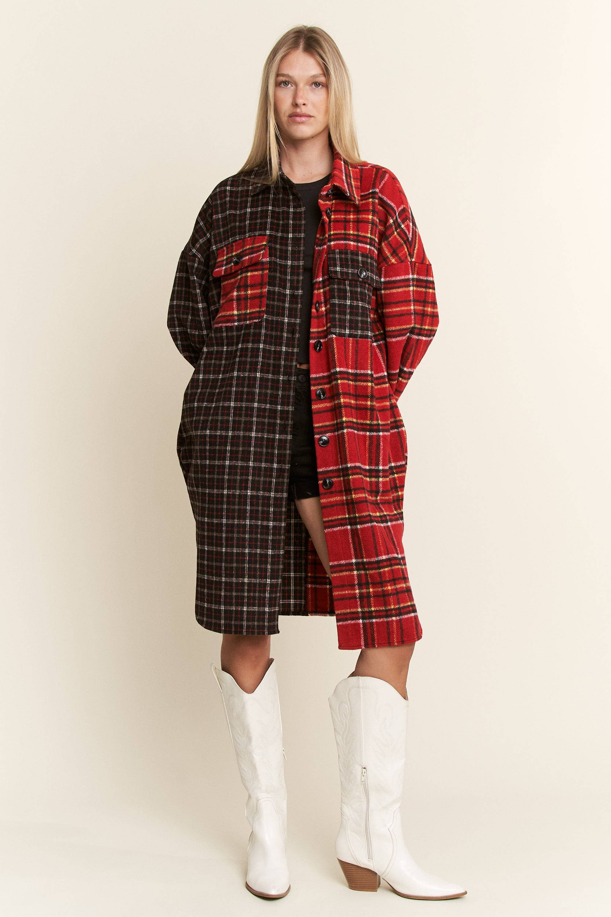 Cardigan oversize à manches longues avec boutons et motif à carreaux