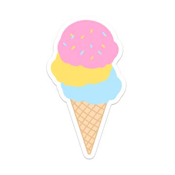 Autocollant en vinyle avec une jolie illustration de cône de crème glacée kawaii créée par Letterpress Jess. Taille : 2" x 4" Papier : Vinyle