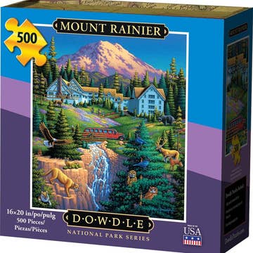 La poussière tourbillonne à travers un désert aride où les os murmurent des histoires de ce qui a précédé. Bury ’Em Deep capture la beauté envoûtante de l'inconnu sauvage, où le ciel ouvert rencontre la terre craquelée et où la mémoire se fond dans le mythe. Créée par l'artiste du Minnesota Linnea Maas, également connue sous le nom de Inside the Robot, cette esquisse numérique a été dessinée en préparation d'une peinture en direct sur scène avec les musiciens locaux Bury ’Em Deep. Le résultat est un paysage de rêve occidental surréaliste qui semble à la fois étrange et électrique. Conçu avec de l'encre à base de légumes sur du carton recyclé durable, ce puzzle de 500 pièces vous invite à vous asseoir un moment, à apprécier le silence et à vous perdre dans la poussière et les échos.