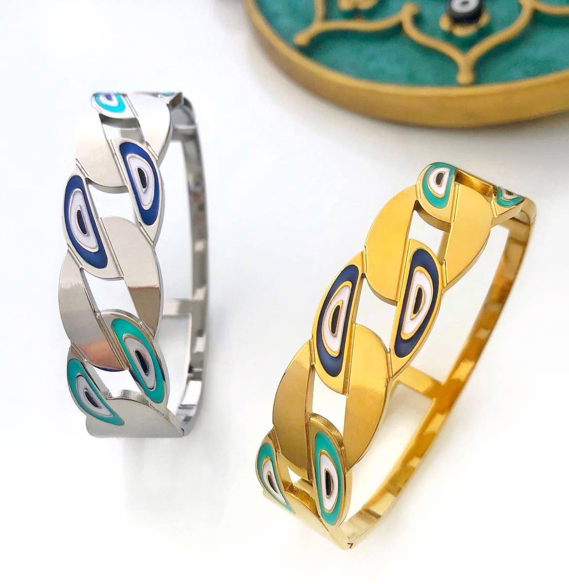 Bracelet jonc bleu mauvais œil, bracelets en or, bracelet manchette en vente B2B