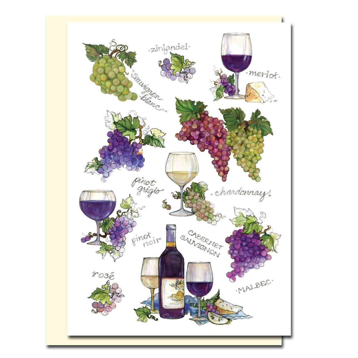 Cette carte de vœux vierge de 5 x 7 pouces présente quatre des formes de bouteilles de vin les plus populaires magnifiquement peintes à l'aquarelle et porte l'inscription « Keep Calm and Pour on ». Une note au verso invite les destinataires de la carte à encadrer leur carte afin qu'ils puissent profiter de l'œuvre d'art pendant des années à venir. DÉTAILS • Cette carte vierge de haute qualité est créée à partir d'une œuvre originale de Candace Alexandres • Chaque carte comprend une enveloppe en papier kraft • Imprimé par notre partenaire d'impression professionnel basé aux États-Unis à l'aide d'encres pigmentaires riches et éclatantes et de papier blanc mat de la plus haute qualité • Les cartes sont pré-froissées mais seront livrées à plat pour une expédition en toute sécurité • Nous sommes soucieux de l'environnement, c'est pourquoi nous n'emballons pas individuellement nos cartes dans du plastique • Les couleurs peuvent légèrement varier en fonction des paramètres de l'écran L'œuvre est protégée par copyright ©Candace Alexandres, Calex Studio TOUS DROITS RÉSERVÉS