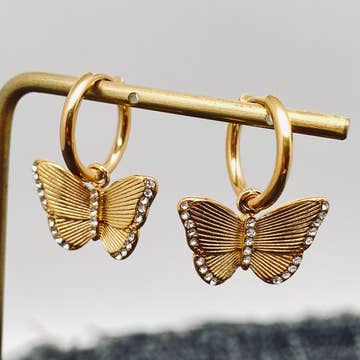 ces adorables créoles Huggie sont sélectionnées et assemblées à la main par la propriétaire de Kaldi Kollective, Abbey, dans son atelier. Elles sont soigneusement assemblées avec amour ! les créoles Huggie s'adaptent parfaitement à l'oreille et la breloque se trouve en dessous. Elles sont donc parfaites pour ceux qui ne veulent pas un grand pendentif mais qui veulent tout de même une jolie boucle d'oreille ! évitez de les immerger dans l'eau et évitez tout contact avec de la laque ou d'autres huiles afin de protéger la brillance et la couleur de ces boucles d'oreilles. Manipulez-les avec soin. Ne tirez pas sur la breloque des boucles d'oreilles. Les créoles Huggie sont plaquées or 18 carats et ne contiennent pas de nickel.
