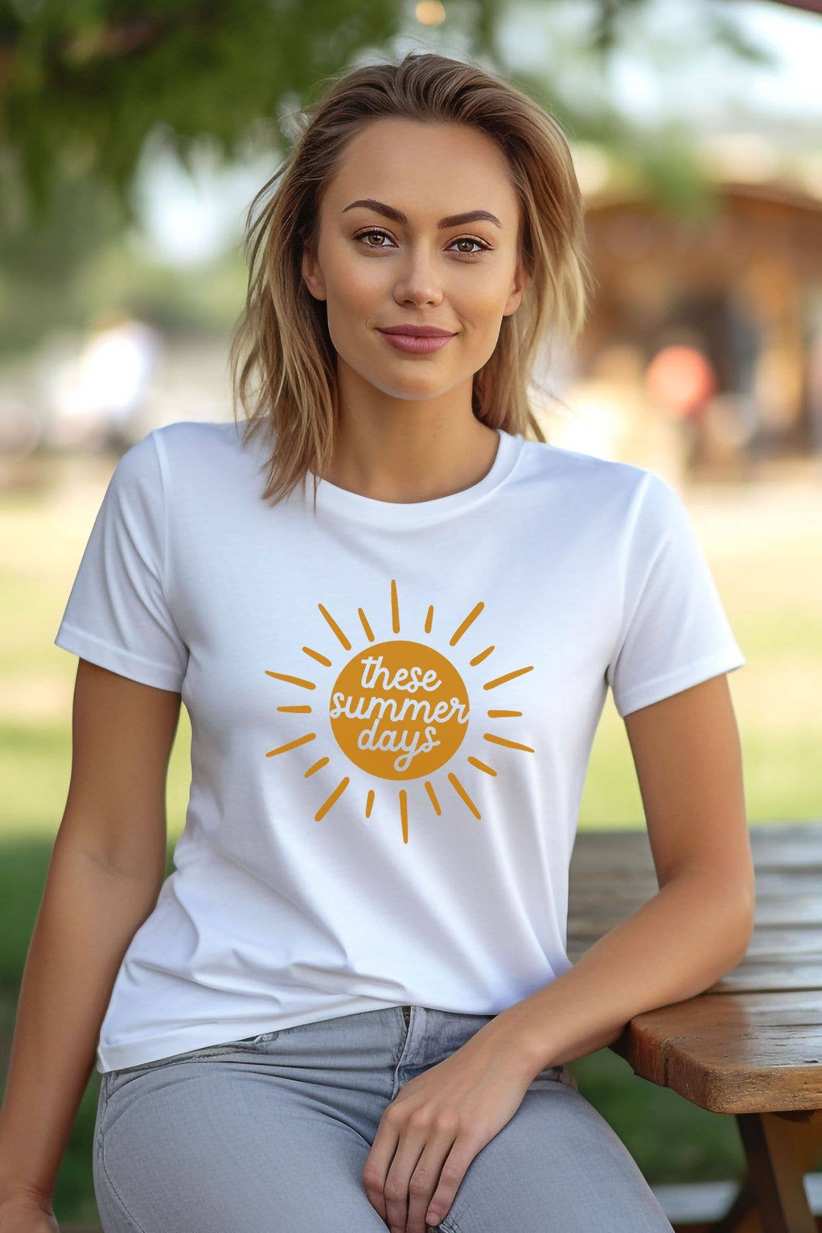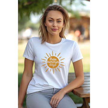 T-shirt à col en V Summer Vibes blanc chiné, multicolore en vente B2B