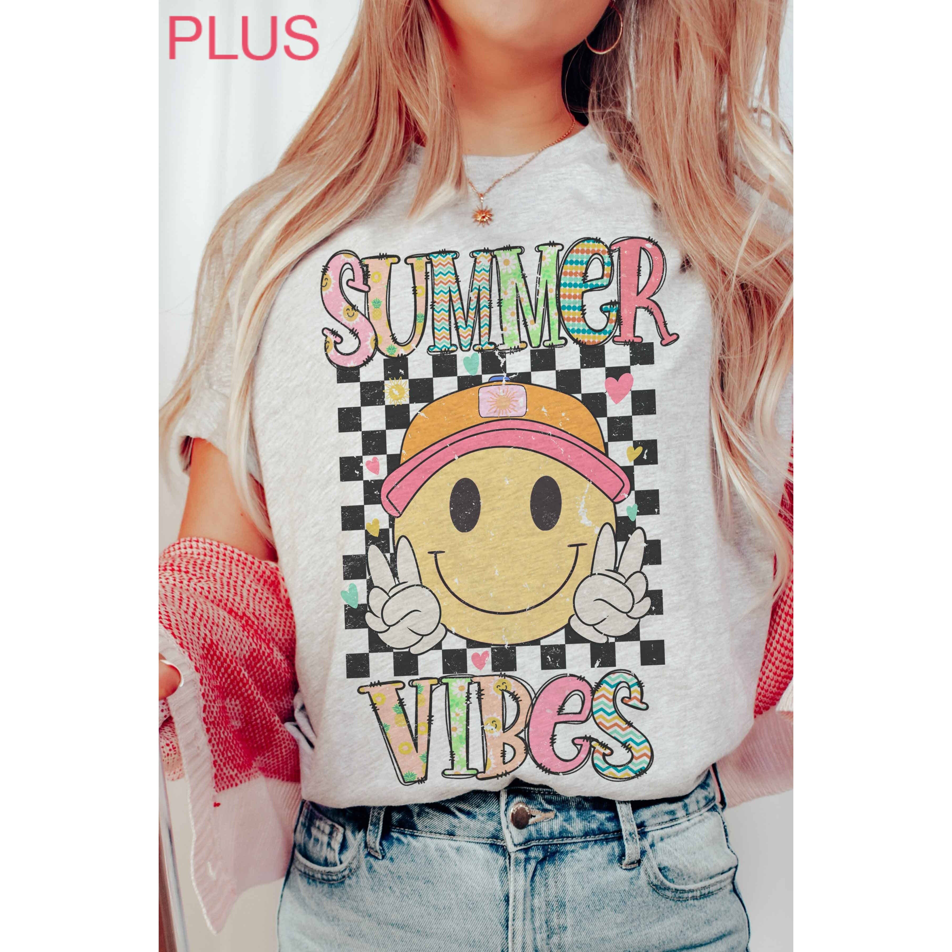 T-shirt à col en V Summer Vibes blanc chiné, multicolore