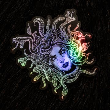 Autocollant en vinyle Bite Back Medusa | Grand autocollant holographique en vente B2B