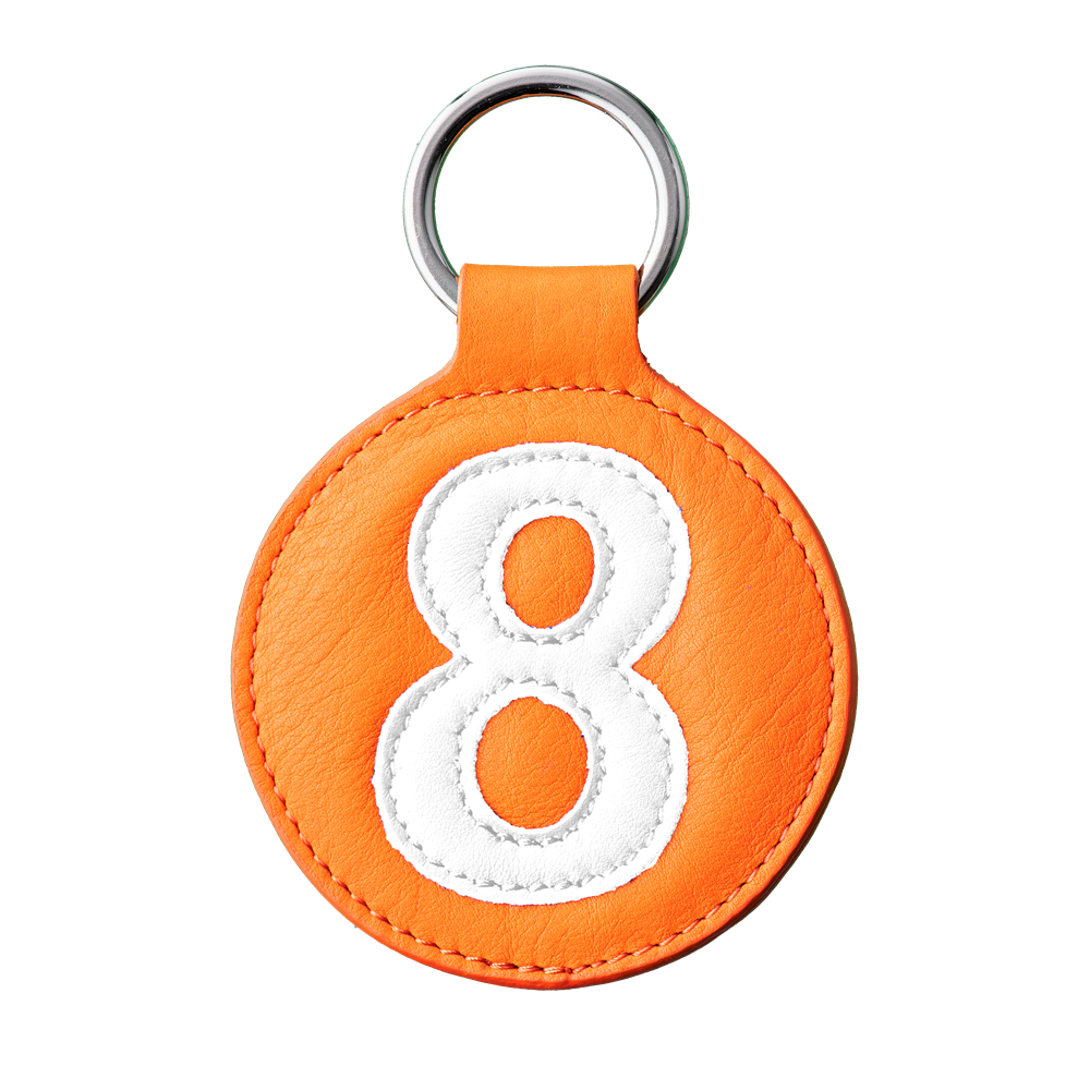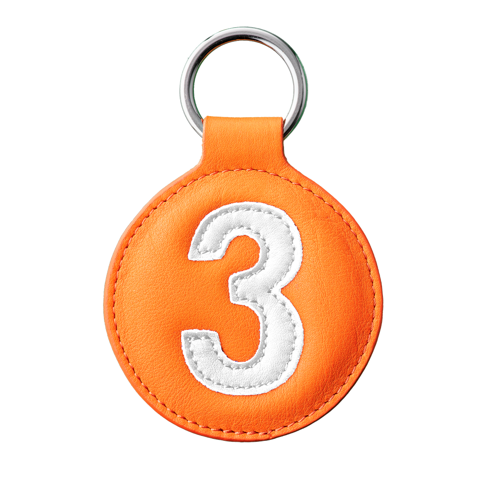 Porte clé cuir orange et blanc numéro 2 idée cadeau en vente B2B