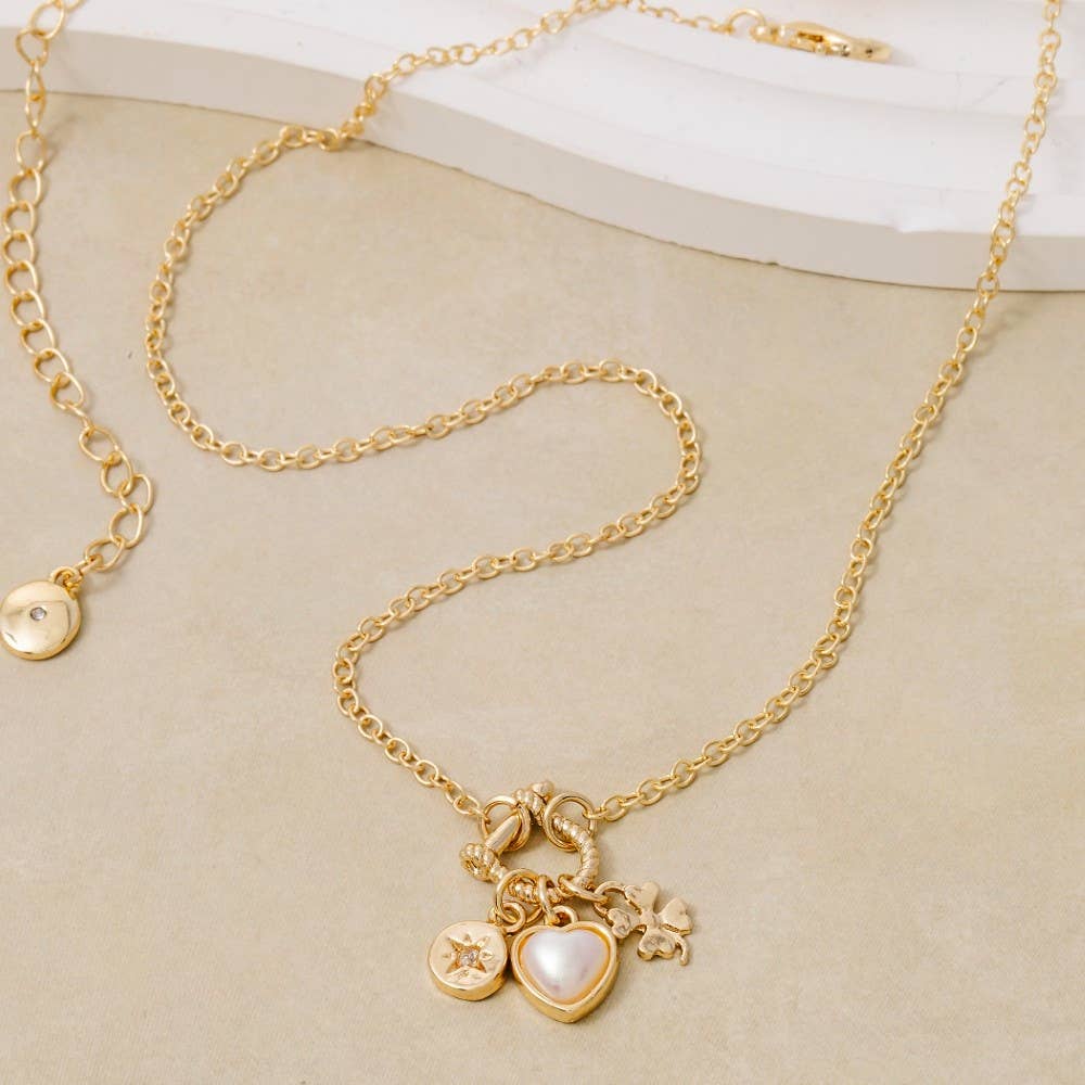 Collier à chaînes superposées avec mini pièces et breloque Cz