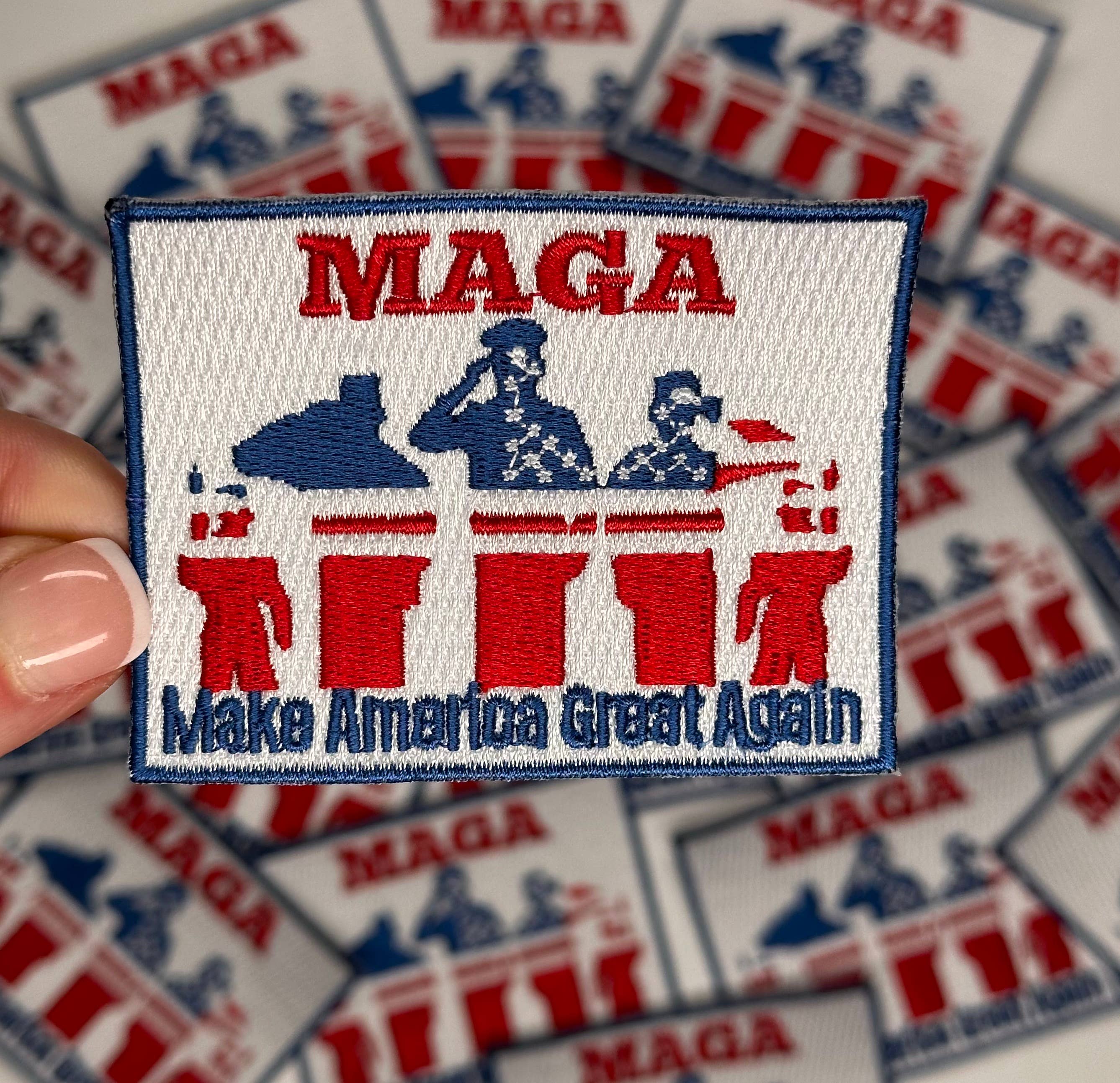 Patch 100 % brodé, support thermocollé, mesure 7,3 cm. Pour les fans de Trump, c'est l'écusson qu'il vous faut ! MAGA