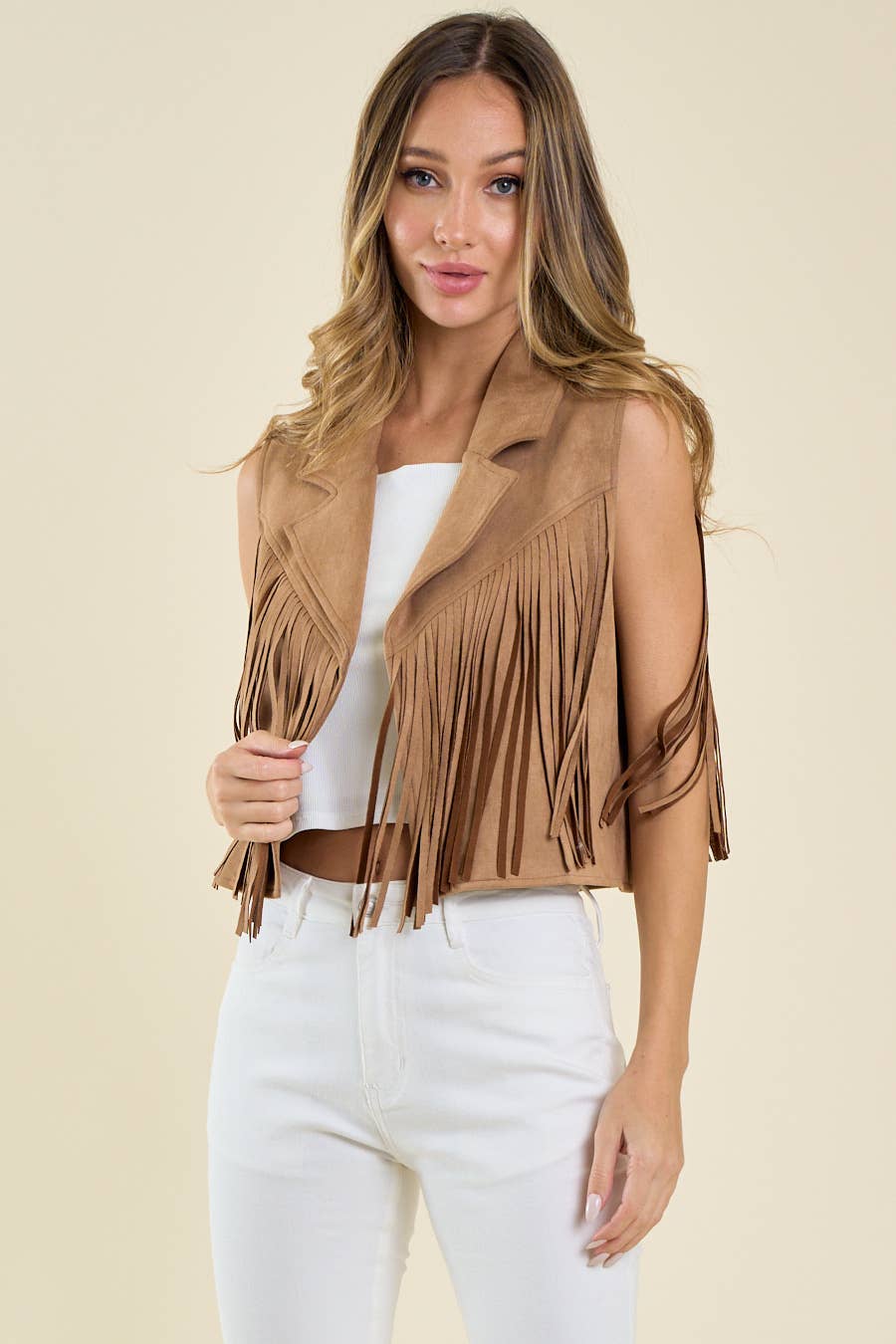 Gilet en faux daim pour femme avec fausse fourrure en polyester-SÉLECTION-3