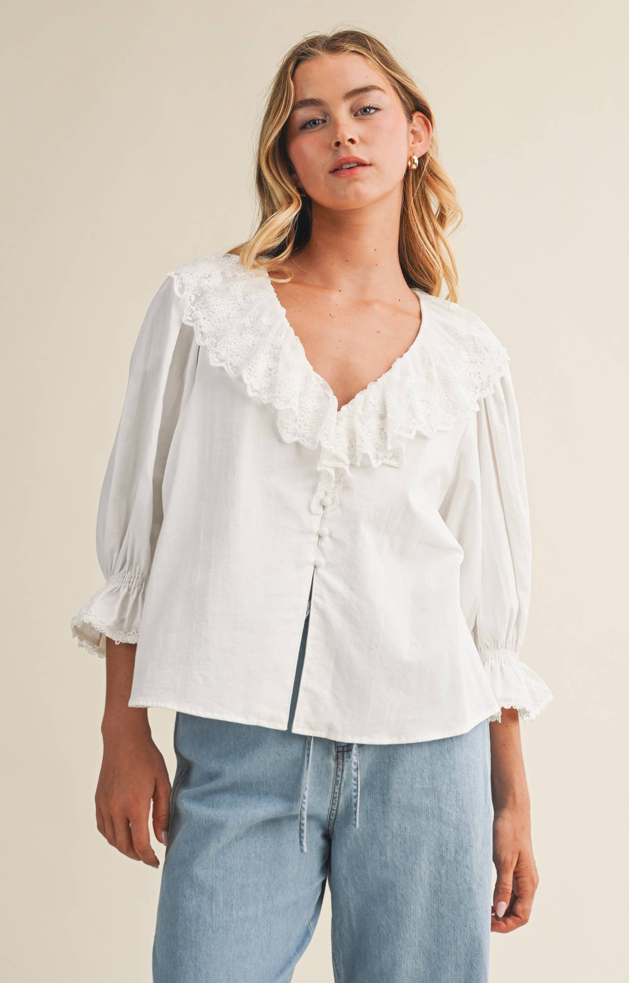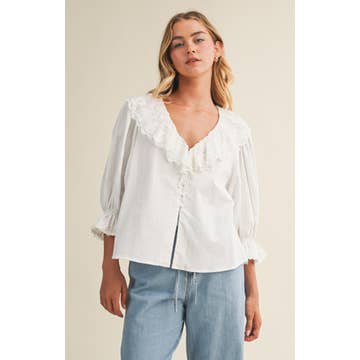 * Numéro de style : E2285T Douce, féminine et infiniment charmante. Cette blouse babydoll apporte une ambiance romantique douce à la tenue quotidienne. Conçue avec un décolleté en cœur et un passepoil contrastant délicat, elle encadre magnifiquement la clavicule et ajoute une touche vintage subtile. Les doubles nœuds à l'avant introduisent une sensation douce et artisanale, tandis que les manches bouffantes et un ourlet à basque légèrement évasé créent du mouvement à chaque pas. Légère et aérée, cette blouse tombe confortablement et se marie facilement avec des pantalons en lin, du denim ou des jupes fluides. La silhouette flatte avec aisance. Ajustée en haut, décontractée à la taille et légèrement froncée pour une finition légère. Une pièce de rêve pour les rendez-vous brunch, les pique-niques dans le jardin et les balades de week-end ensoleillées. Universellement portable, ce haut mélange charme intemporel et modernité. Parfait sous des cardigans en maille douce ou porté seul pour accueillir les journées ensoleillées. Blouse babydoll à décolleté en cœur avec passepoil contrastant, doubles nœuds, manches bouffantes et ourlet à basque. Légère, drapé doux. Style romantique facile pour le printemps et les jours de transition. Caractéristiques - Décolleté en cœur - Blouse babydoll - Passepoil contrastant - Nœuds à l'avant - Manches courtes bouffantes - Ouverture en goutte d'eau au dos avec bouton Taille + Coupe Le mannequin mesure 1,77 m et porte une taille Small. Veuillez vous référer à notre tableau des tailles.
