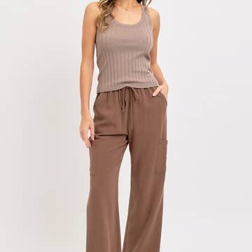 PANTALON LARGE À TAILLE ÉLASTIQUE UNIE. 70% RAYONNE 30% LIN.