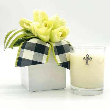 Les rites funéraires juifs du premier siècle comprenaient la préparation d'un corps avec des résines parfumées et des épices, des huiles de nard, de myrrhe et d'aloès. L'évangile de Jean rapporte : « Nicodème, qui était déjà venu voir Jésus la nuit, a également apporté un mélange de myrrhe et d'aloès, d'environ 75 livres. Ils ont donc pris le corps de Jésus et l'ont enveloppé dans des draps avec les épices, selon la coutume funéraire juive » (Jean 19:39-40). La bougie du Saint-Suaire est un mélange d'huile d'olive pure de la région de Galilée, en Terre Sainte, et d'une huile spéciale provenant des arbres vieux de 2000 ans du jardin de Gethsémané. Infusé de certains des anciens parfums funéraires mentionnés dans les récits évangéliques de la résurrection, il représente symboliquement les parfums qui auraient été présents sur la nappe funéraire en lin de Jésus. Nous prions pour que l'arôme divin de cette huile de dévotion vous rappelle l'espoir et la promesse de vie éternelle offerts par la mort et la résurrection de Jésus-Christ. Verre de 3 x 3 pouces, coulé à la main avec de la cire de soja.