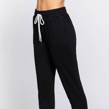 Pantalon de jogging en jersey avec poche latérale à taille élastique Ceinture élastiquée avec détail à nouer Pleine longueur Ourlet à revers Très extensible pour plus de confort CONTENU ET ENTRETIEN : 96 % rayonne modale, 4 % élasthanne laver à la machine à froid fabriqué aux États-Unis