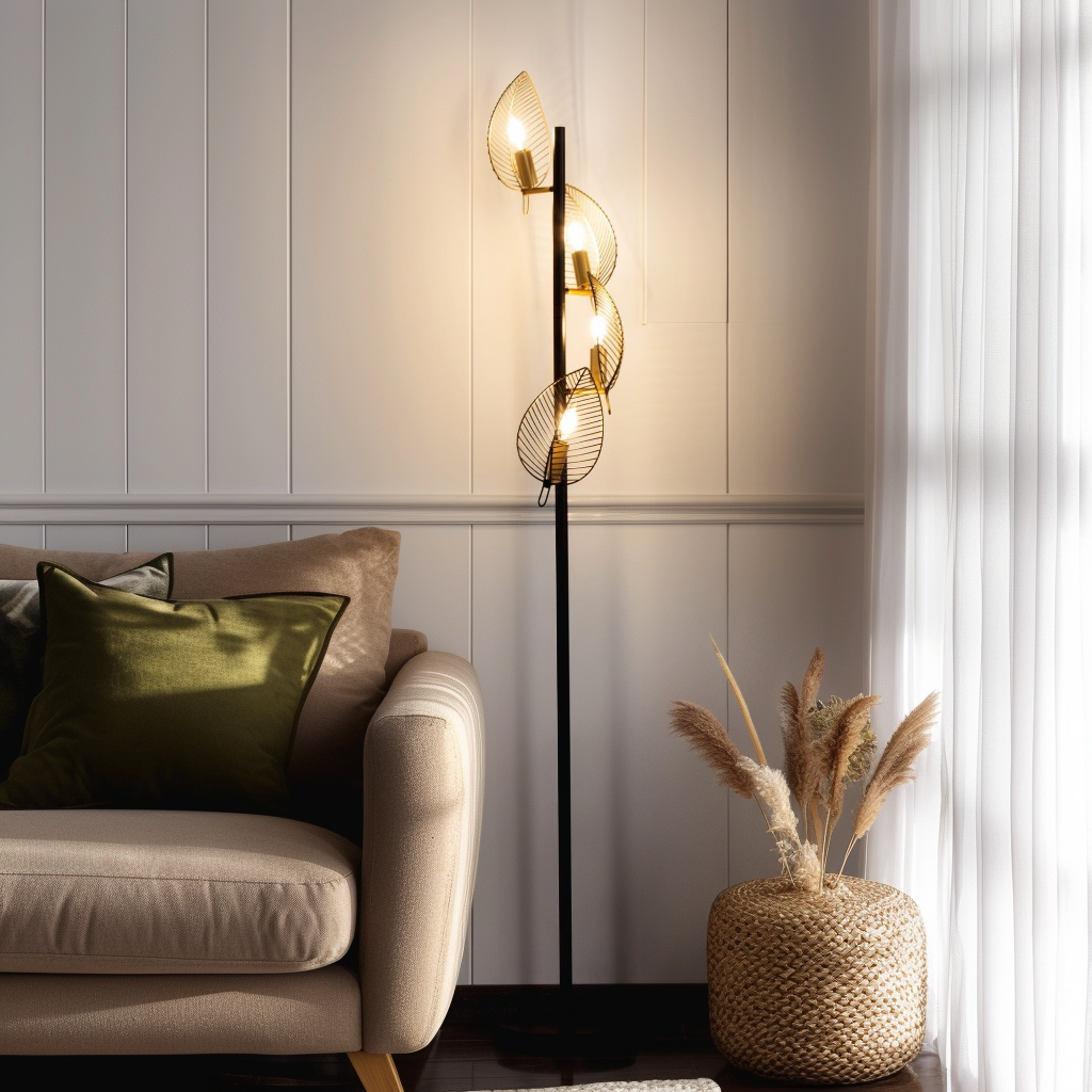 Lampadaire en métal de 67,3'' avec 4 lumières en forme de feuille pour L