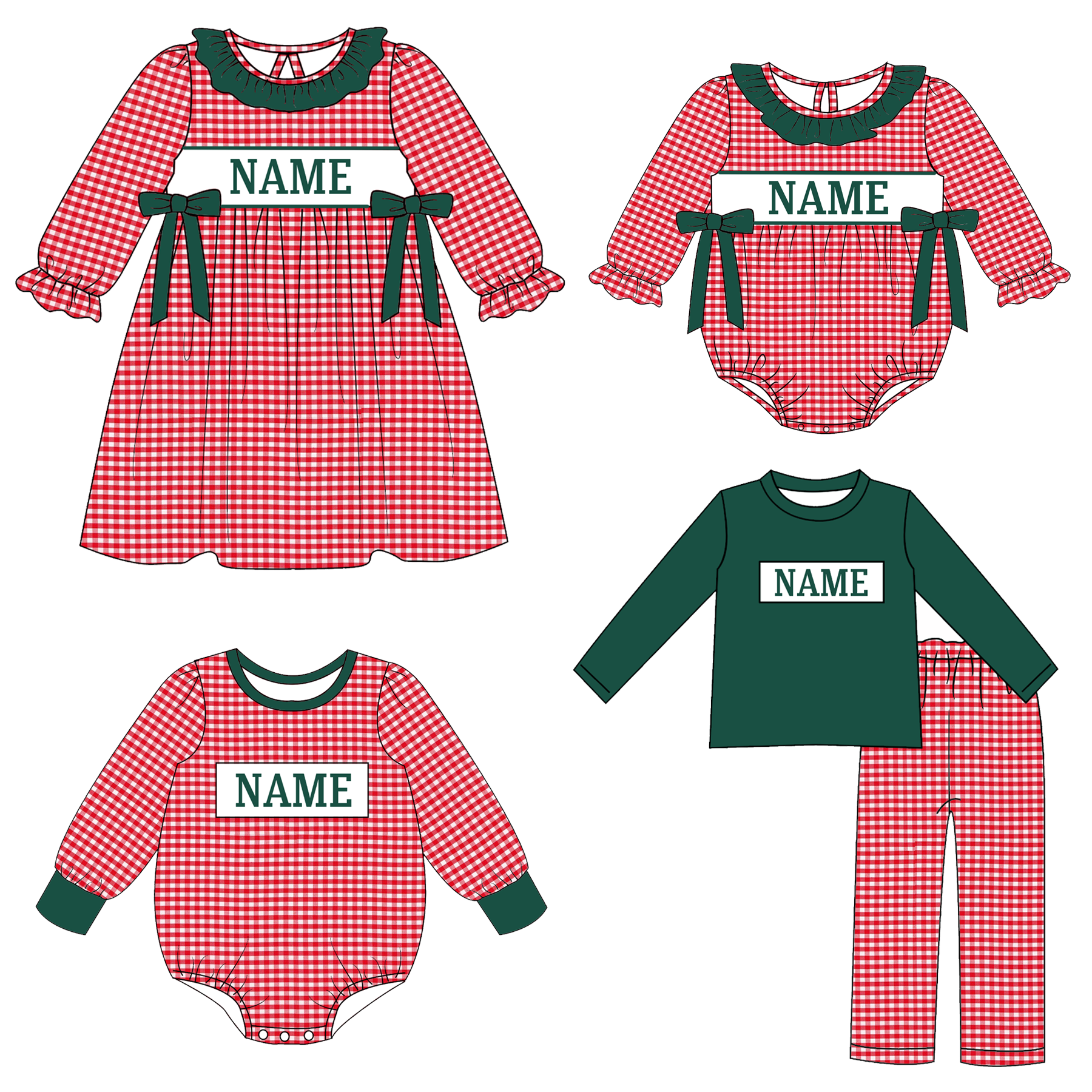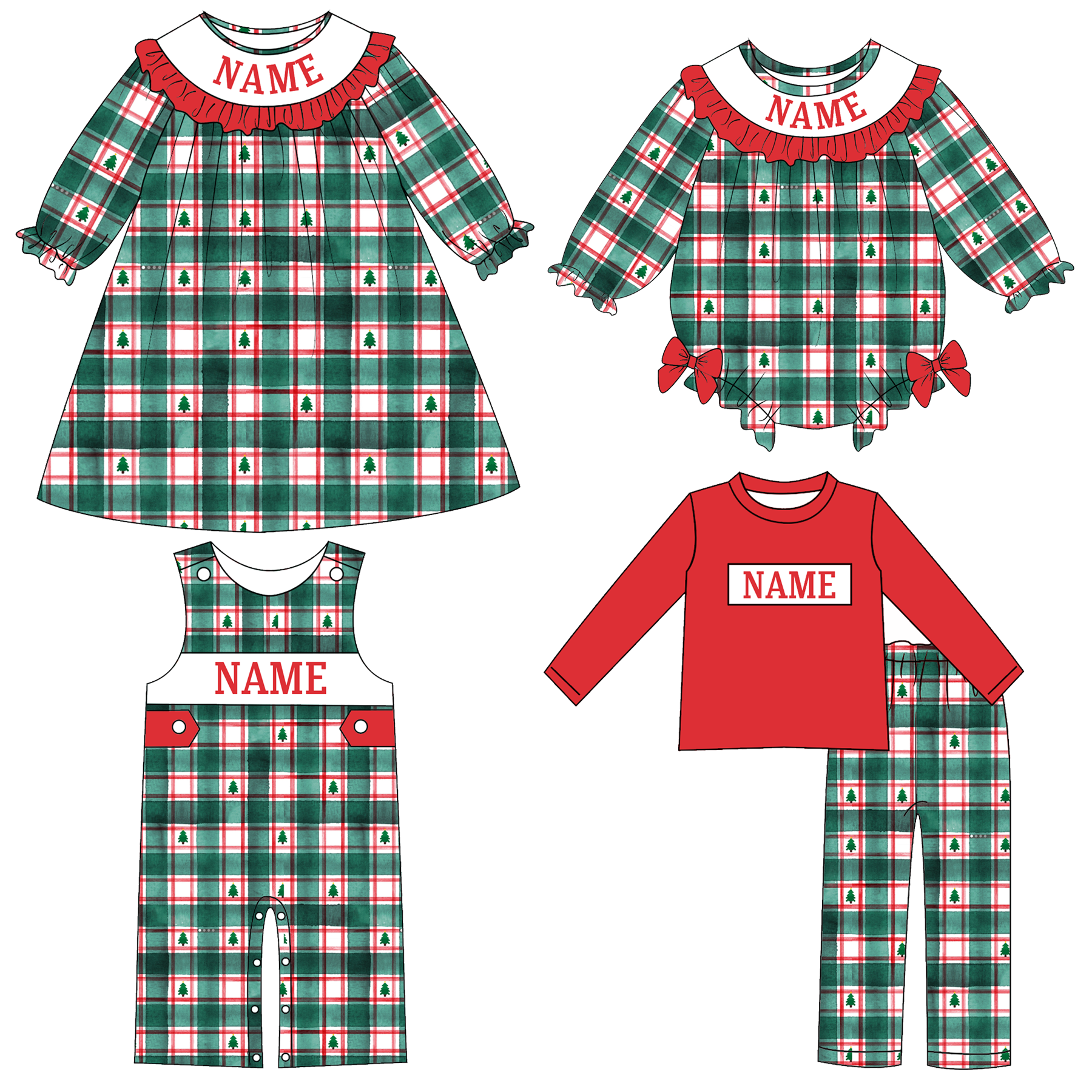 Collection de Tenues Personnalisées avec Nom et Broderie Smockée de Noël