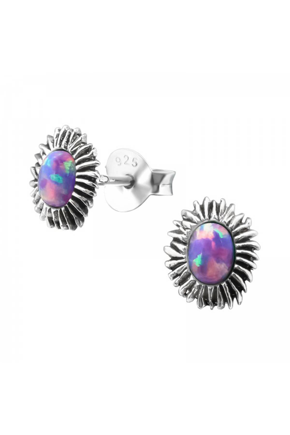 Clous d'oreilles à tige en forme de pierre de lune arc-en-ciel brute naturelle en argent 925 en vente B2B