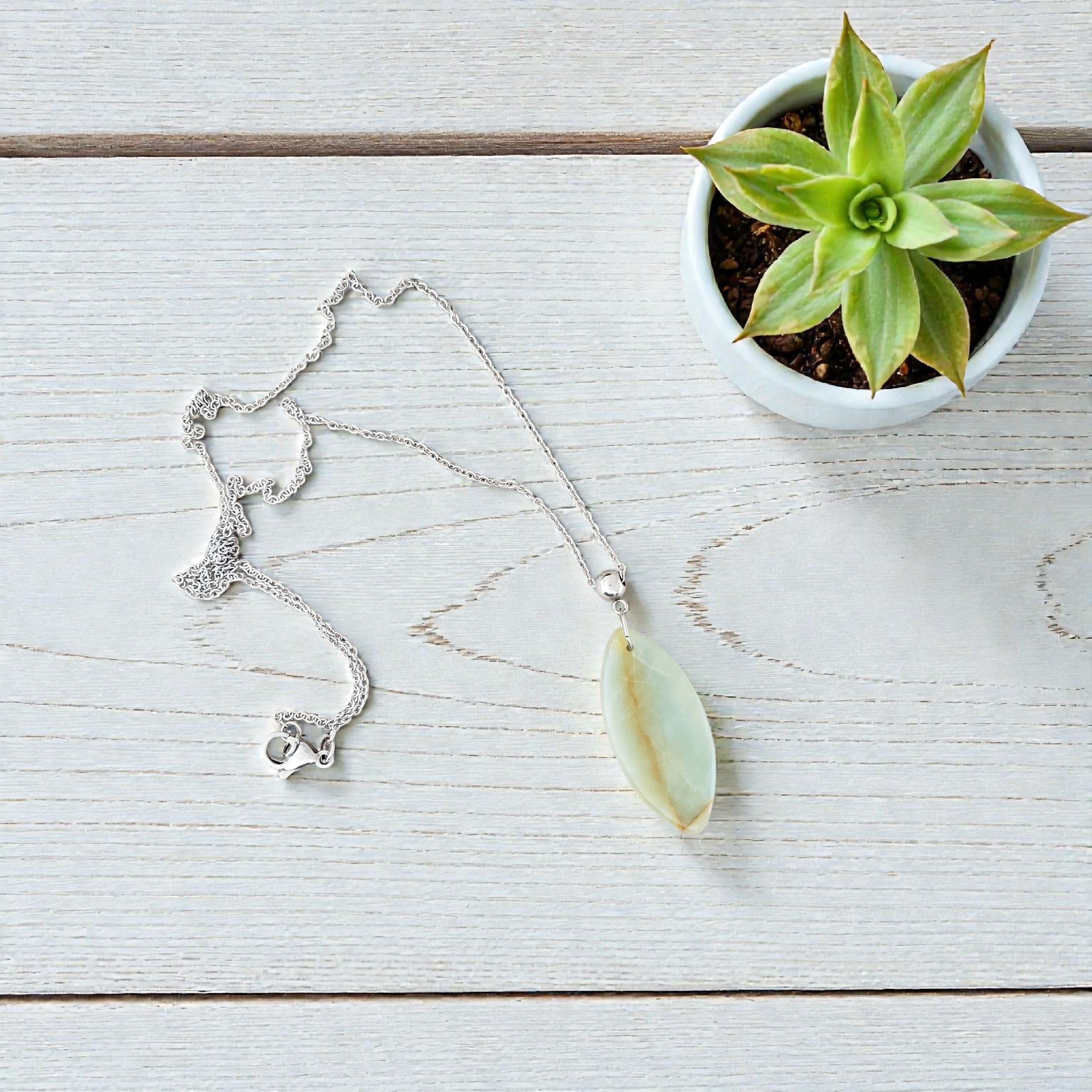 Collier feuille sculptée aigue-marine