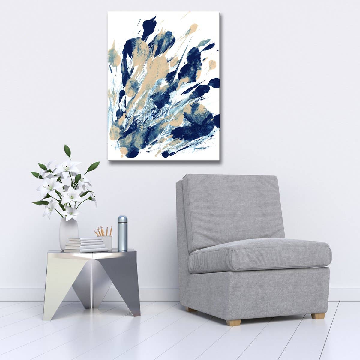 Taille : 8 » x 10 ». Matériau : blanc mat. Décor moderne imprimé abstrait des couleurs de la collection de sons.