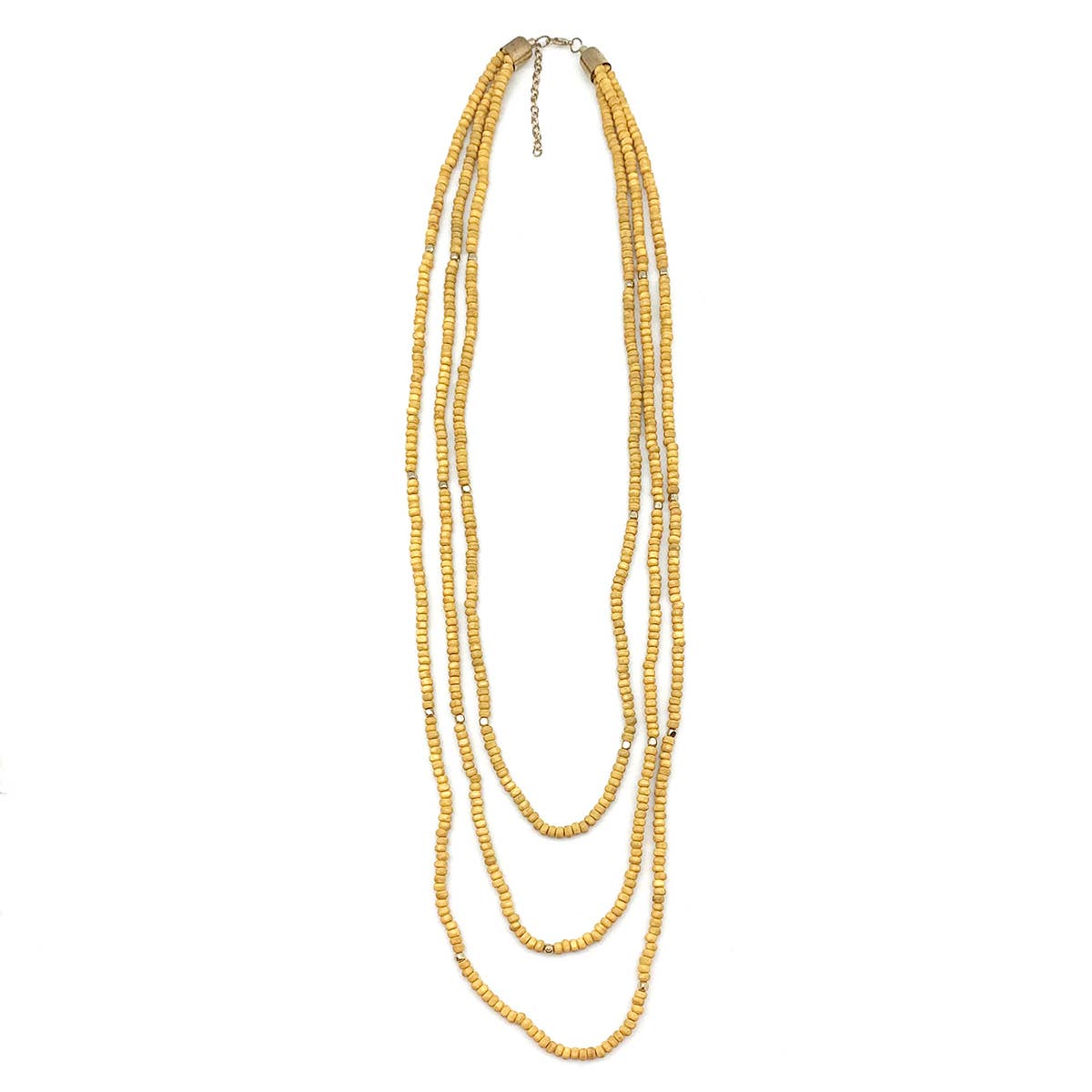 Deux rangées de perles rondes soigneusement enroulées de chaque côté des maillons de trombone avec une double chaîne à la fin. Monture en or rempli Longueur : 40-46 cm ajustable Fabriqué à la main dans l'atelier de Mabel à San Francisco.
