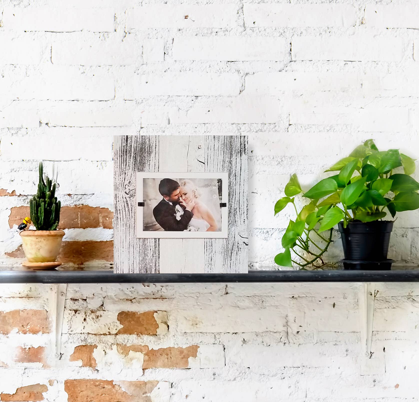 Rebord photo en bois blanc, support photo en bois