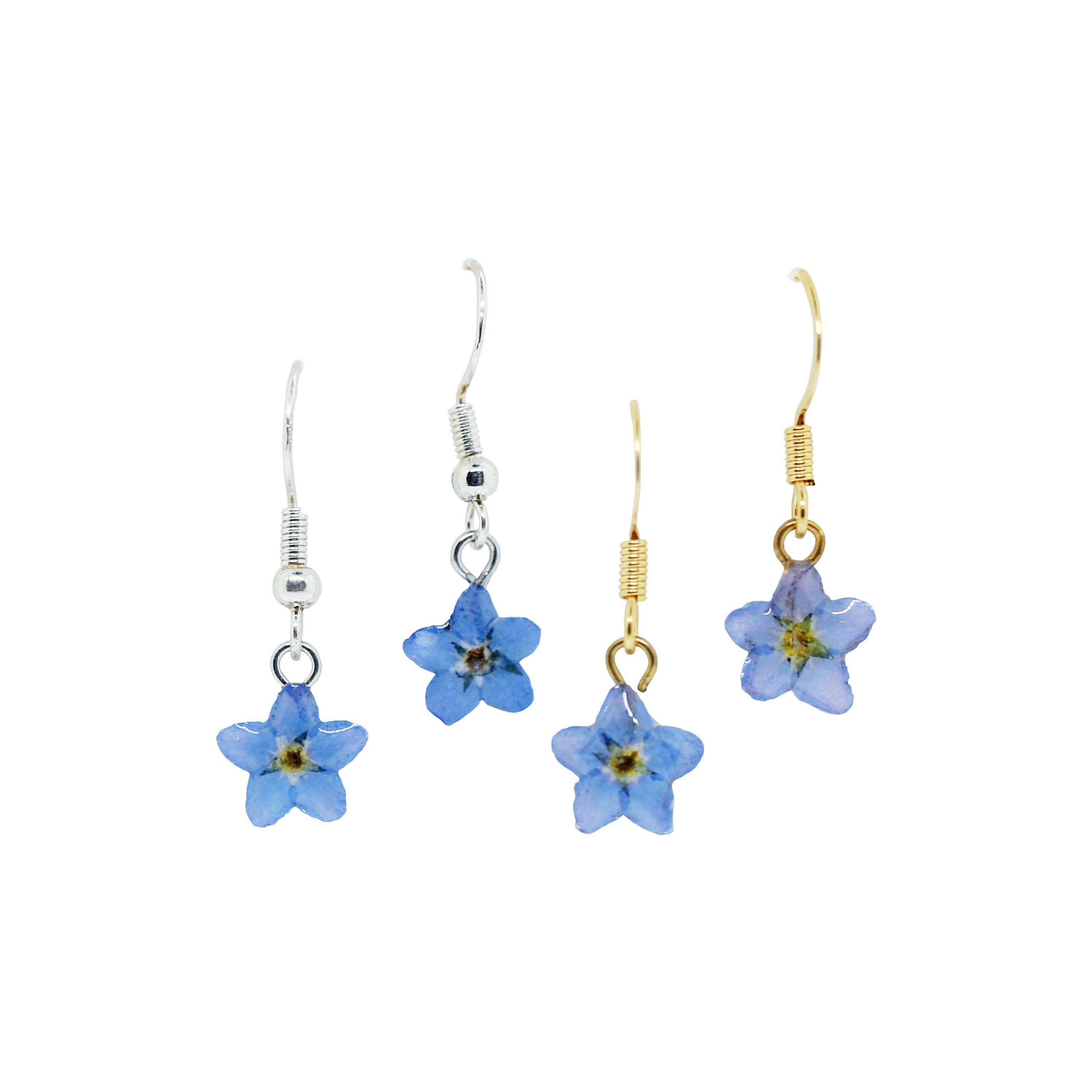 Collier Forget Me Not fabriqué avec une véritable fleur pressée conservée en résine.