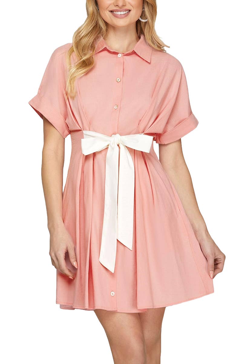 Robe mi-longue à fleurs avec encolure froncée D4794