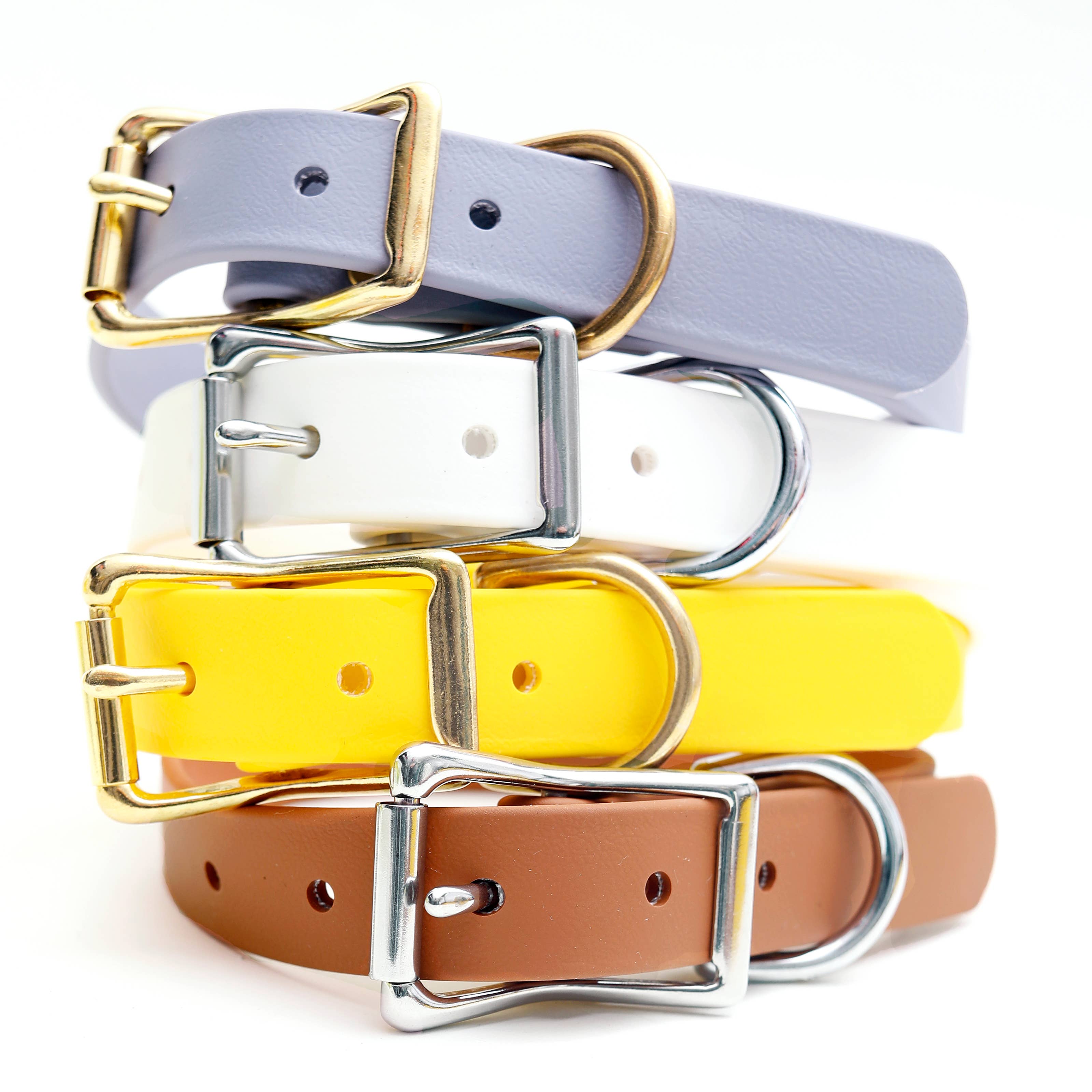 Nos laisses pour chien imperméables avec poignée souple sont résistantes aux odeurs, aux taches et conviennent aux végétariens/végans ! Idéales pour la chasse, la baignade ou toute autre activité où le collier pourrait se salir ou sentir mauvais. Notre collection High Desert est disponible en Blanca (blanc), Mesa (marron), Gris (gris) et Limon (jaune). Nous proposons également des colliers assortis dans la boutique ! À propos de nos laisses imperméables résistantes aux taches et aux odeurs : - Sangle en Biothane 100 % polyester recouverte de PVC - Matériel en laiton plaqué ou acier inoxydable - Durable, résistant aux intempéries, aux odeurs et imperméable - Nettoyage facile avec savon et eau - Disponible en 3 largeurs