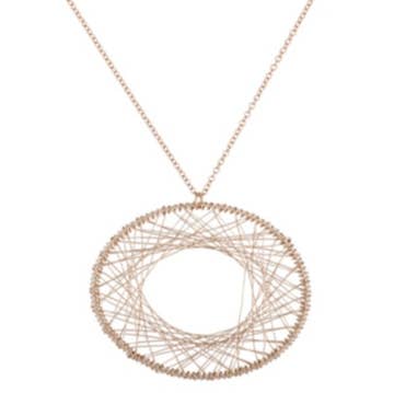 Goutte dorée sur chaîne en or de 45,7 cm. Boule métallique délicate « Silverthread Drop » qui s'accroche à une chaîne de corde double de 18 po. La boule métallique est libre et la chaîne passe à travers le centre où il y a un chemin naturel à travers le fil. La boule est fabriquée à partir de fil doré. La chaîne est remplie d'or.