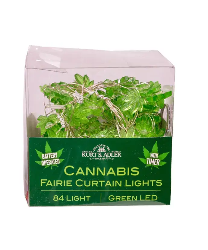 Ces guirlandes Kurt Adler à piles Cannabis sont un ajout amusant à votre décor de vacances ou de tous les jours. Ce kit comprend 20 feuilles de cannabis translucides, chacune avec une ampoule LED verte.